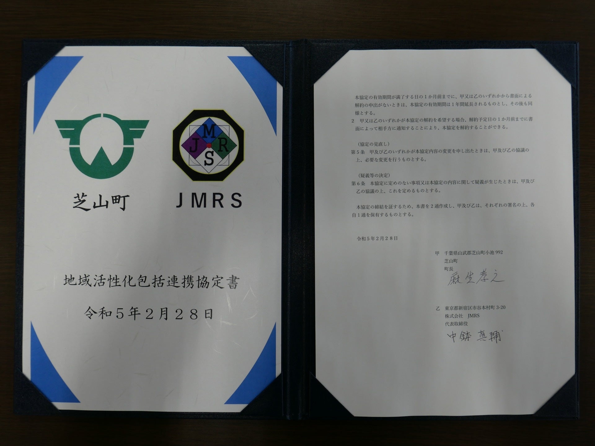 株式会社JMRS(本社:東京都新宿区、代表取締役:中鉢真輔、以下JMRS)は、本日、千葉県芝山町(町長:麻生孝之、以下芝山町)と協定を締結し、町の活性化及び町民サービスの向上のため、相互に連携を強化し、取り組んでいくこととなりました。本協定の締結にあたり、芝山町とJMRSは、航空人材の育成を通したまちづくりのため、今後、航空教育協会(仮称)設立に向けた検討を開始することを確認しました。本協定締結による施策第一弾として、「スカイパークしばやま 『そらまなキャンペーン』」を実施します。内容は、全国から「スカイパークしばやま」にお越しなる学校団体のうち、空飛ぶ学び舎ラボでの講座を受講(キャリア講座)、又は、空飛ぶ学び舎弁当を注文し、パーク内の航空科学博物館・風和里しばやま等の施設を周遊する、小学校・中学校・高校団体を対象として、お1人当たり費用補助をします(後日詳細発表)
