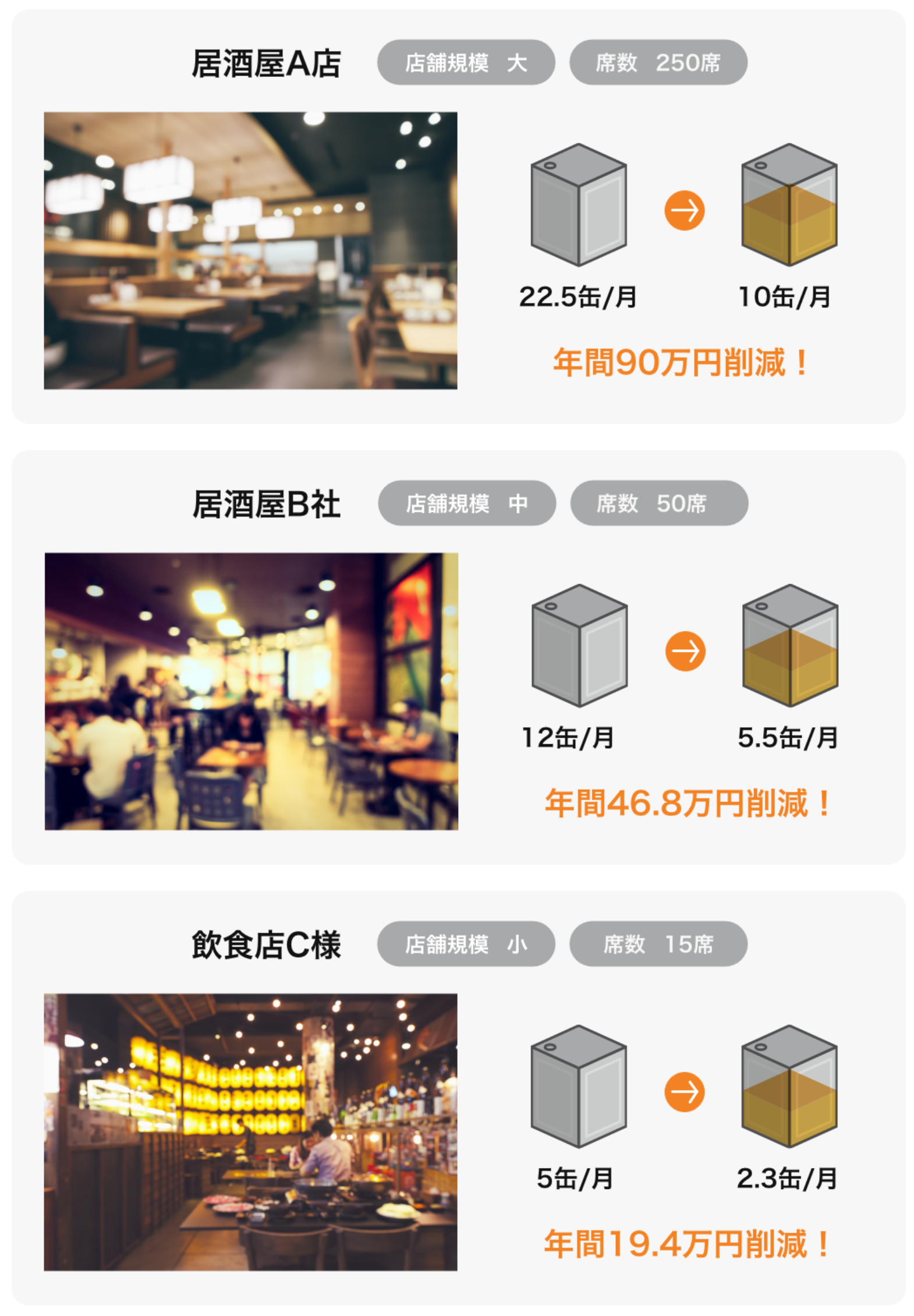 油の使用量を約半分近く削減させ、油代を大幅にコストカットしています。