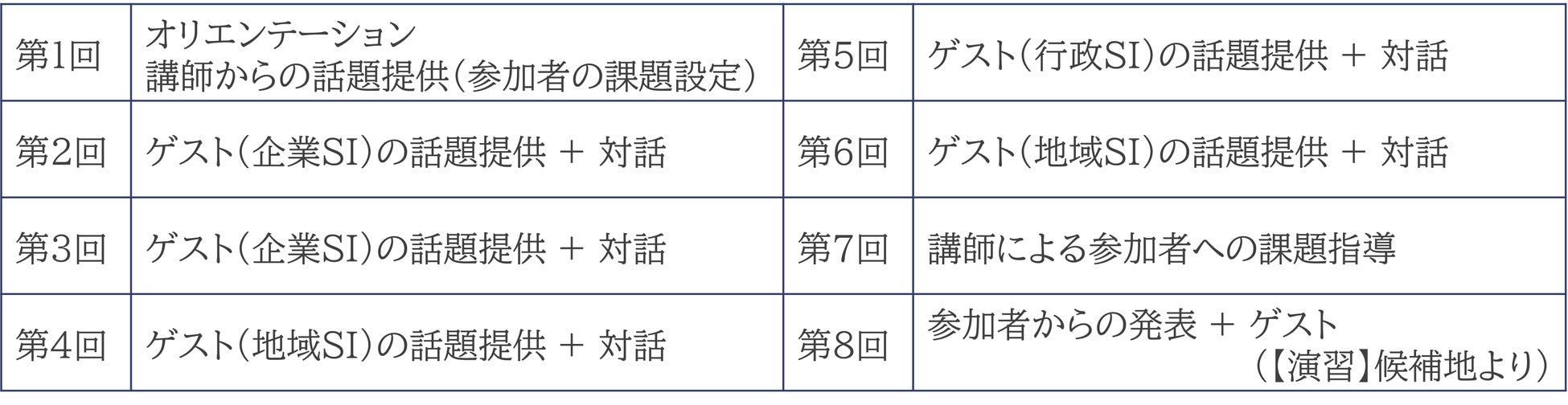 (ゲスト講師) (第2回)中川雄貴氏、(第3回)渡辺雄人氏、(第4回)松原明美氏、(第5回)山田崇氏、(第6回)早瀬昇氏