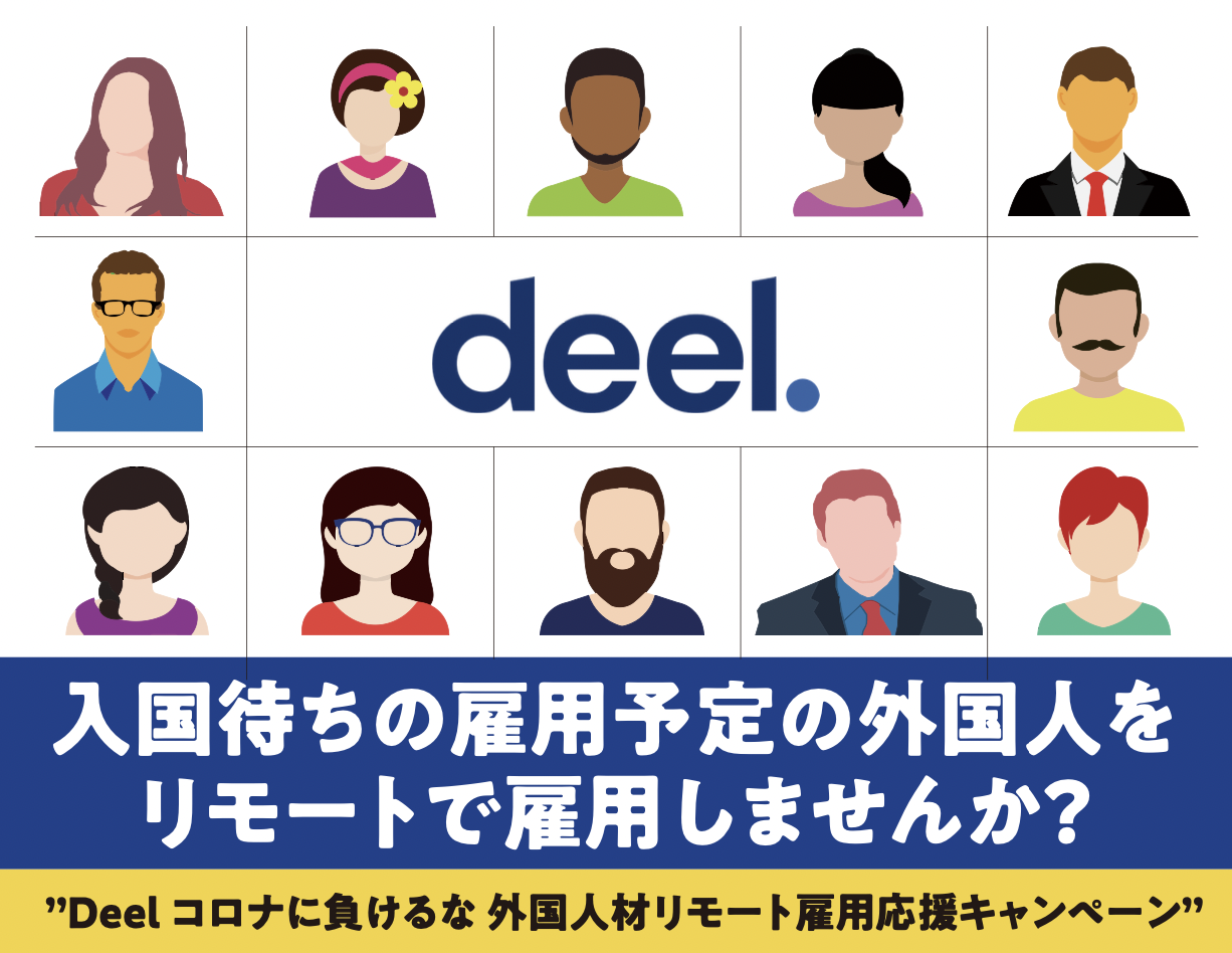 グローバル人材をリモート活用する企業の労務管理SaaSを提供するDeelは、コロナ禍において雇用予定の外国人の入国待ちをしている企業をサポートするために、外国人材が現地にいながら従業員として迅速に雇用いただけるEORサービス(従業員の派遣サービス)を月単位でご利用いただける、”コロナに負けるな 外国人材リモート雇用応援キャンペーン”を2021年12月15日より開催します。