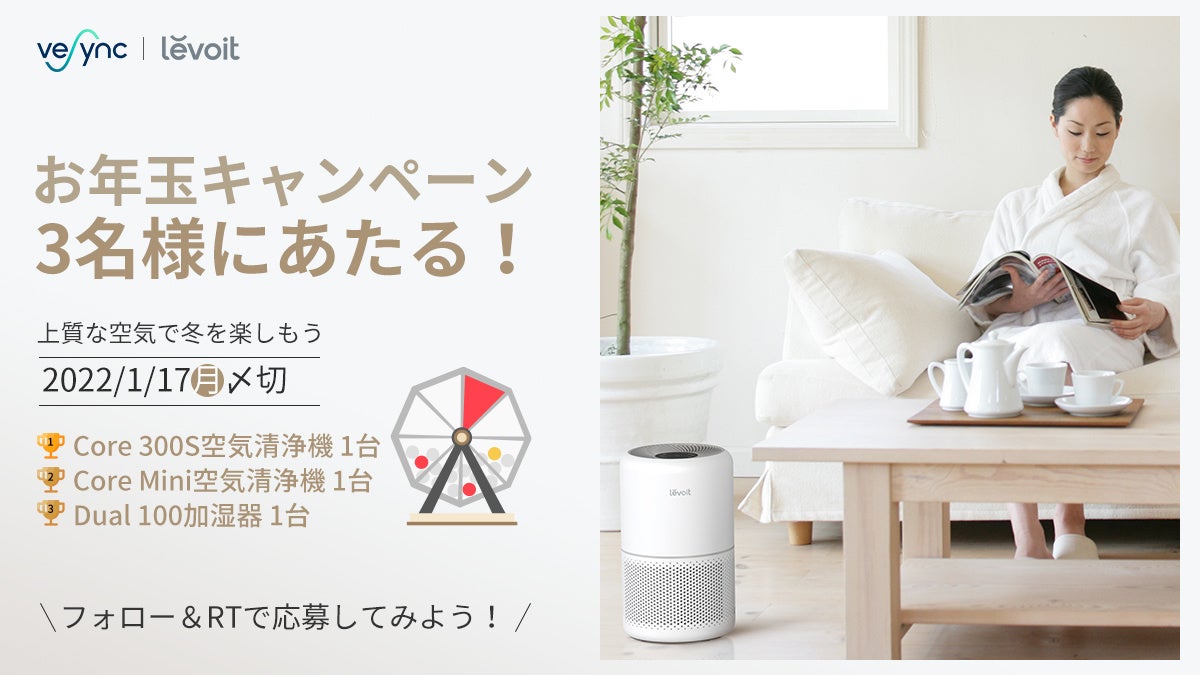 【VeSyncお年玉キャンペーン】をTwitterで開催! フォローとRTで参加、抽選で3名様に米国ベストセラーの空気清浄機、加湿器をプレゼント