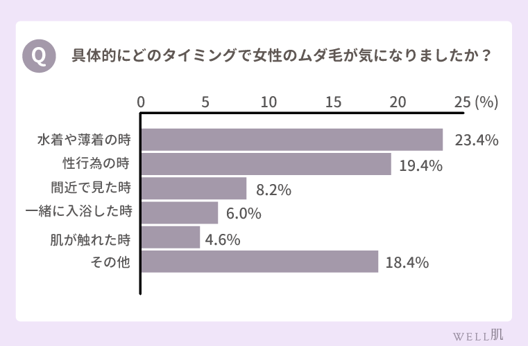 ムダ毛が気になったタイミングで最も多いのは「水着や薄着の時」