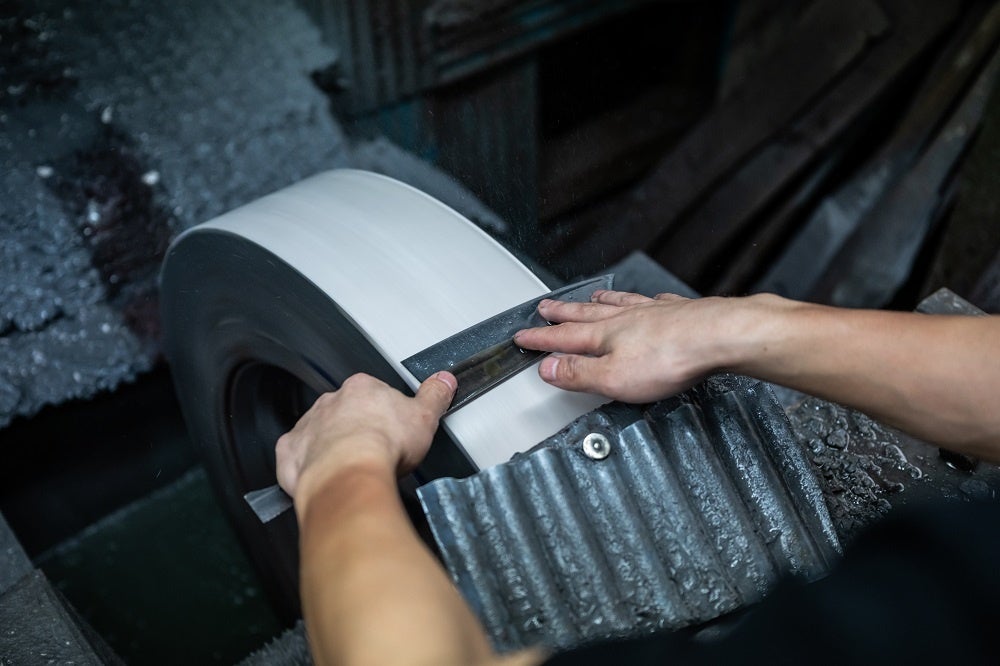 刃物づくりが700年の間受け継がれる越前で、包丁づくりの要となる刃付け業から始まった龍泉刃物。以降、創業から70年に及ぶ歩みの中で、産地内でいち早くステンレス鋼の製品化を進め、一般家庭用包丁の分野に着手するなどし、生産規模の拡大を図って参りました。その中で越前打刃物の伝統的な“手技”、“手仕事”にこだわり続け、一本一本手間隙をかけ丁寧に製造しています。こだわりの鍛造と熱処理により鋼材の硬度と粘りを最大限に高めた上で、職人の手技を活かした薄刃仕上げ、手研ぎにより“最高の切れ味”を実現しています。このものづくりを続けながら、越前打刃物の先人たちの叡智を享受し、そしてそれを後世に伝えることで、自分たちの役割を果たしていきたいと考えております。伝統産業である越前打刃物を守りながら、革新的な製品を生み出す企業であり続けたい。そんな想いを抱いています。