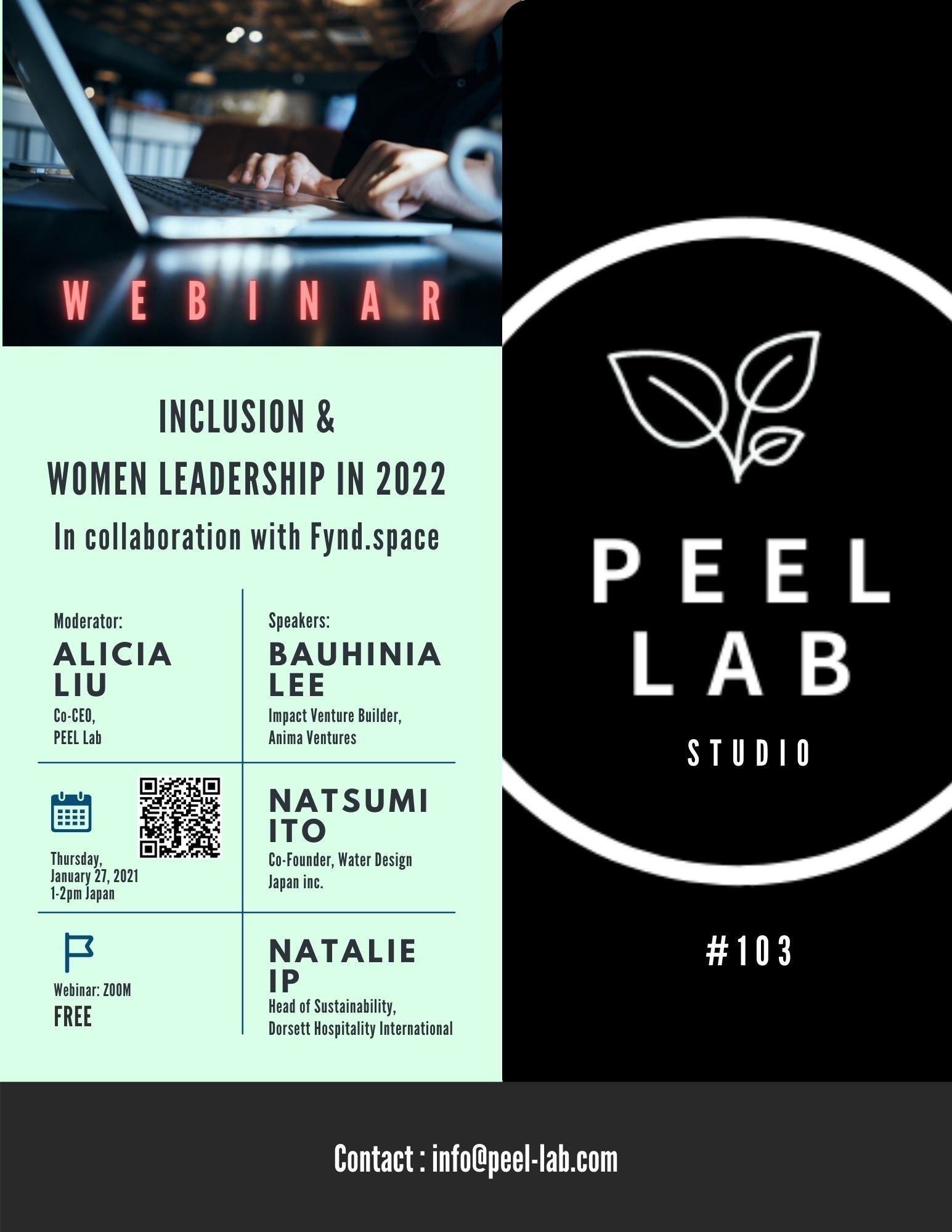 PEEL Lab(ピールラボ)は、サステナビリティの教育や啓蒙にも力を入れています。2022年1月27日(木)には、インクルージョンと女性リーダーシップを主題としたセミナーを開催いたします。
