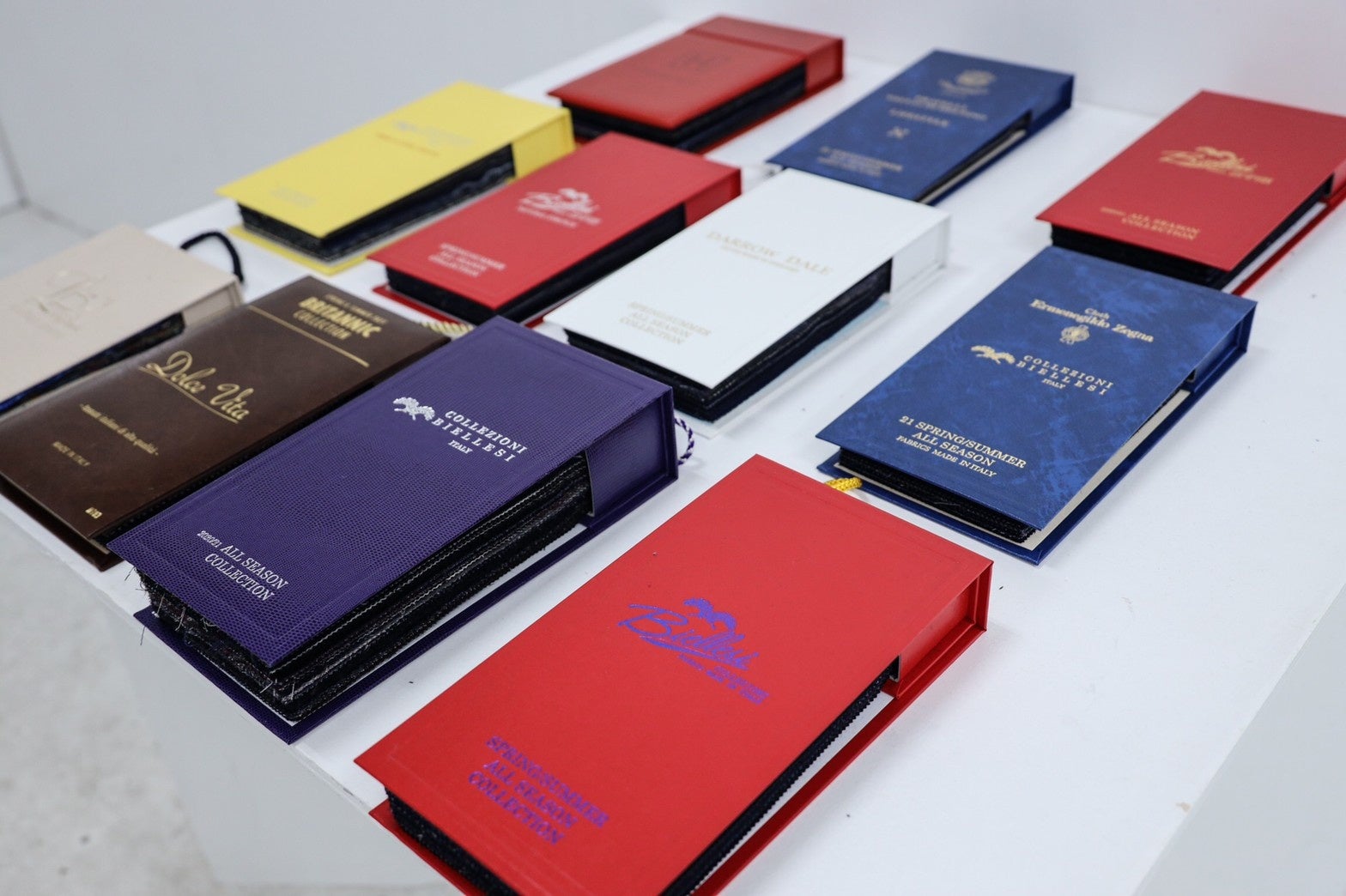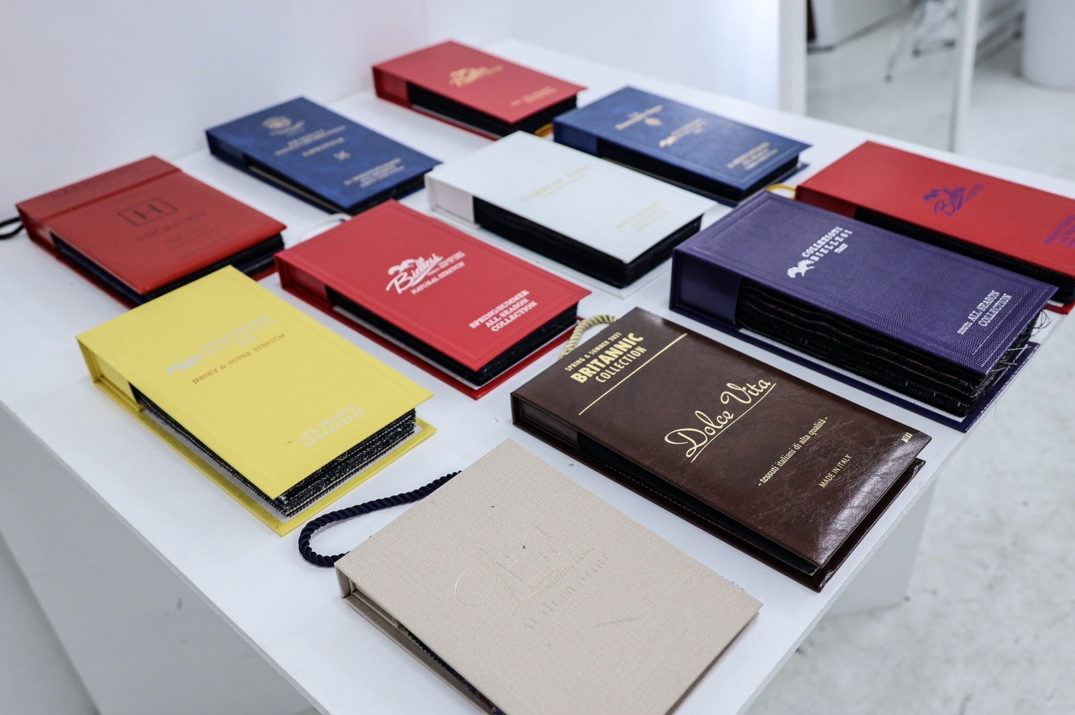 サロンでは数多くの生地・シーズナル限定の生地・デザイナーこだわりのボタン・裏地を揃えております。