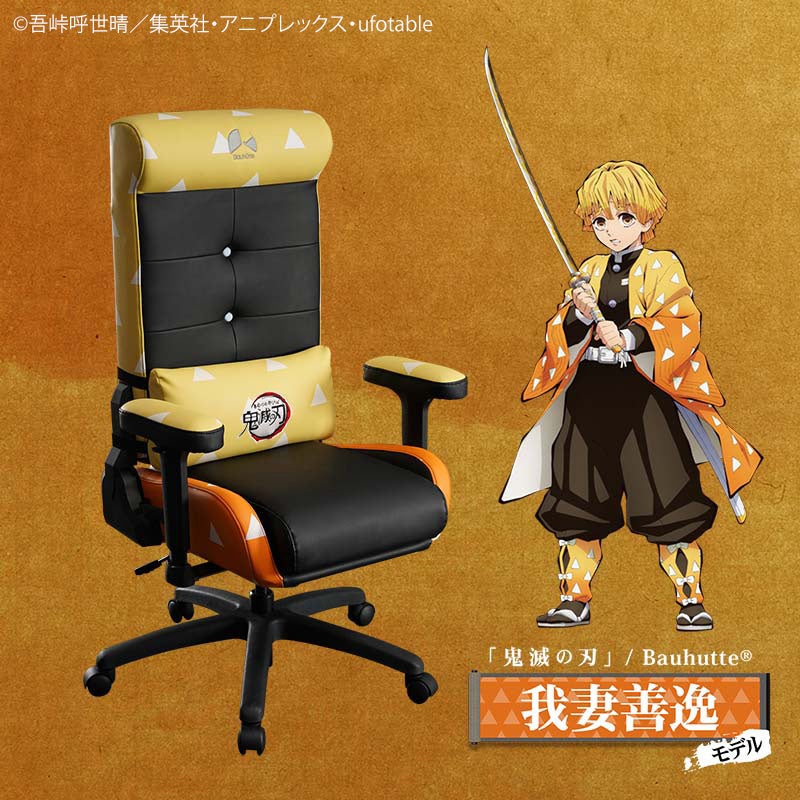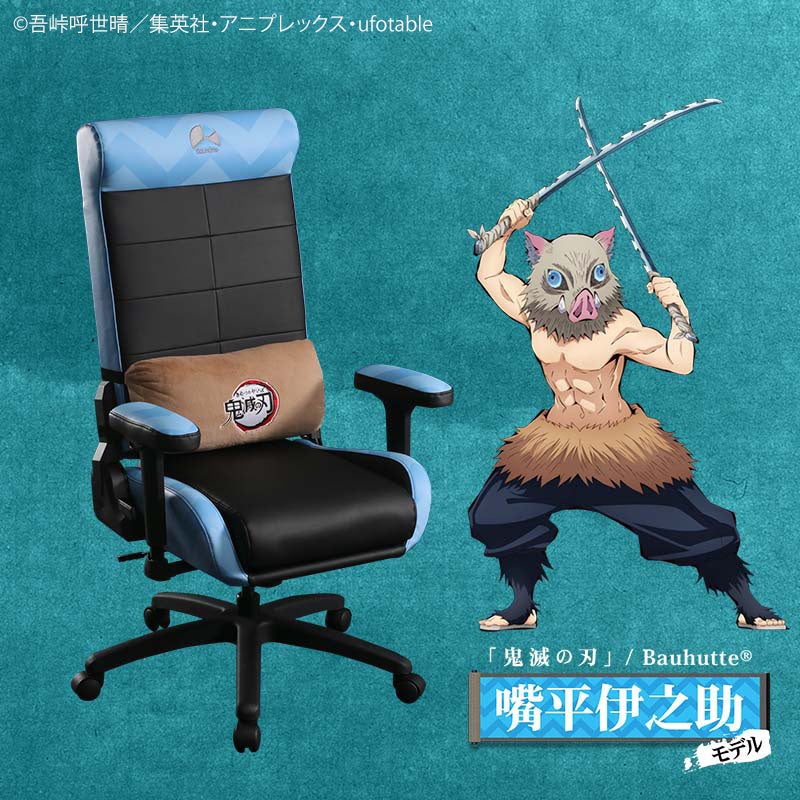 | 【製品名】「鬼滅の刃」ゲーミングチェア/座椅子 【モデル】竈門炭治郎モデル :G-300KM-TAN 竈門禰豆子モデル※:G-300KM-NEZ 我妻善逸モデル :G-300KM-ZEN 嘴平伊之助モデル :G-300KM-INO 冨岡義勇モデル :G-300KM-GIY ※禰豆子の「禰」は「ネ+爾」 【タイプ】チェア&座椅子一体型 【サイズ】チェア:幅 約69.5×奥行70~122×高さ112~118cm 座部の高さ 約43~49cm 座椅子:幅 約69.5×奥行63.5~123×高さ58~90.5cm 座部の高さ 約21.5cm 【耐荷重】100kg 【価 格】オープン価格(税込参考:55,000円) 【URL】https://www.bauhutte.jp/product/g300km ©吾峠呼世晴/集英社・アニプレックス・ufotable |