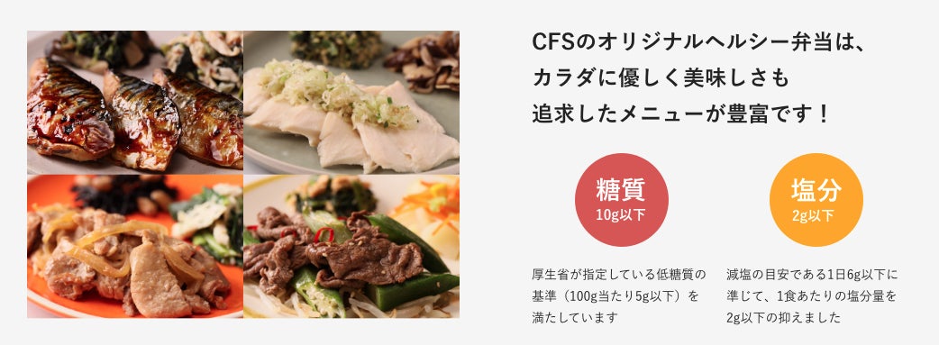 ダイエットで糖質が気になる方や、健康上の理由により塩分を控えたい方向けに、お弁当は全商品【糖質10g以下・塩分2g以下】に抑えています。