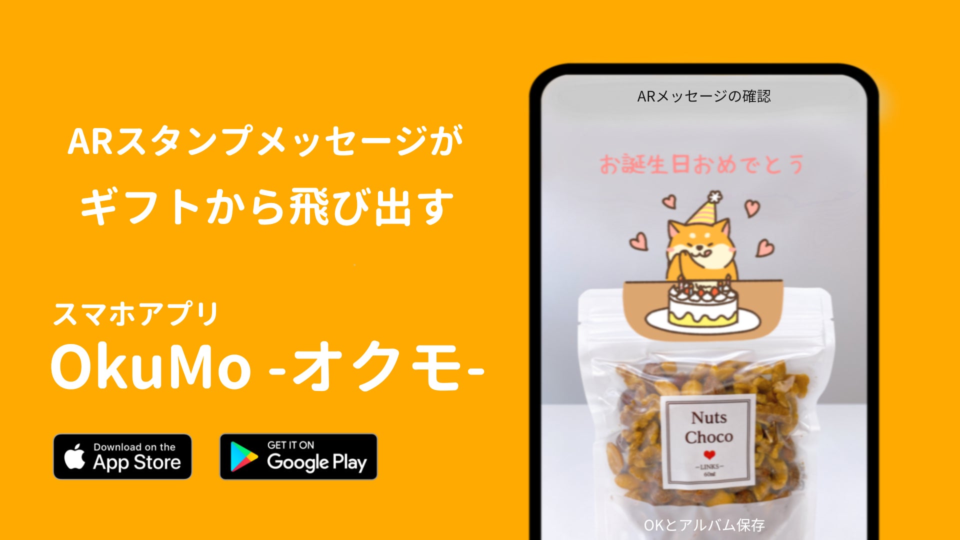 ARスタンプメッセージを贈り物に添えて、大切な人へ届ける事ができるスマホアプリOkuMo(オクモ)。