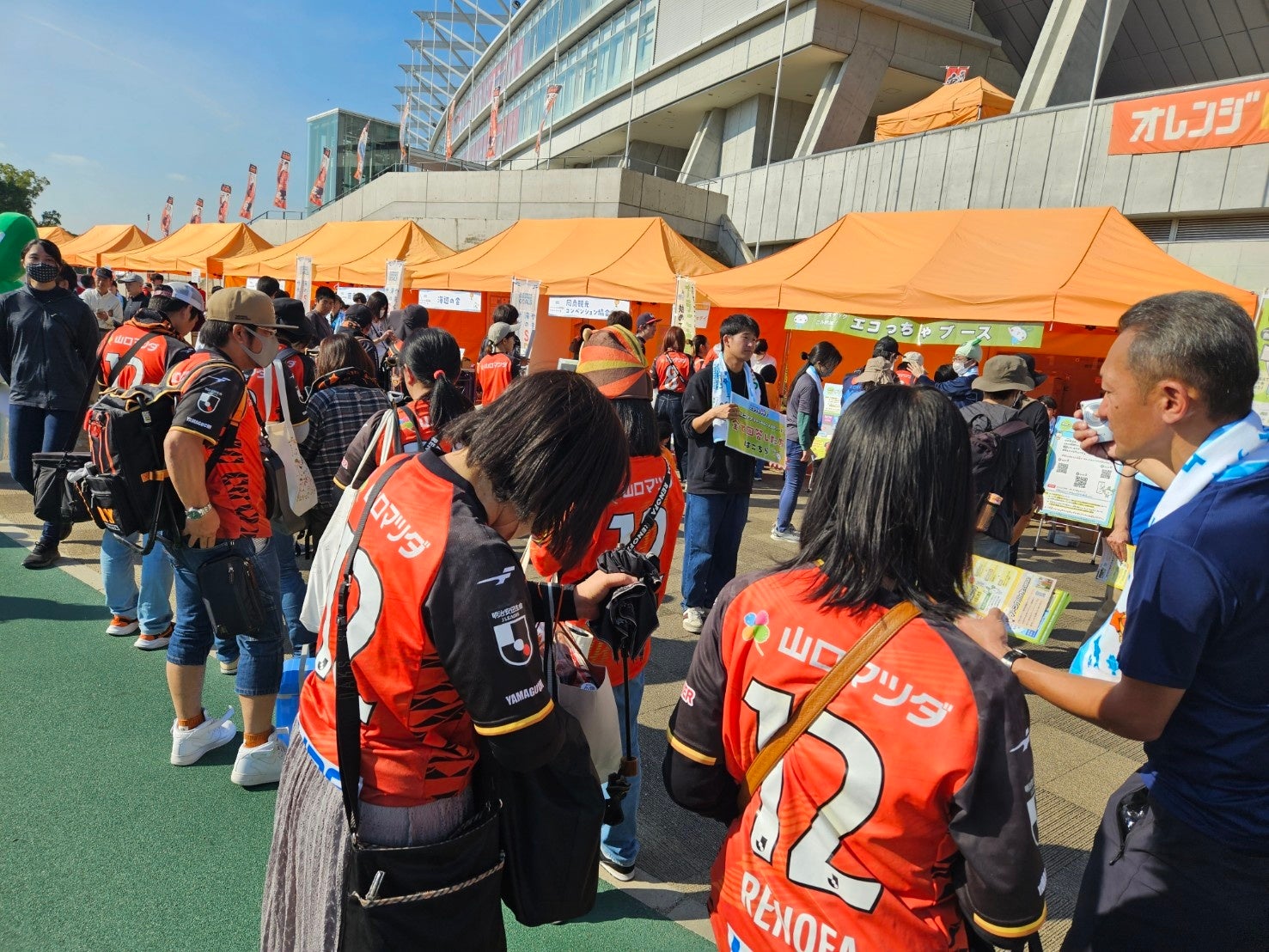 その「やまぐち海の SDG sサポーターズ 」が、2023年11月5日(日)、レノファ山口FCホームゲーム最終戦に合わせて開催された、山口県主催のイベント「エコっちゃデイ in RENOFA YAMAGUCHI FC」において、多くの来場者を前に、これまでの活動を報告するとともに、会場の一角においてプラスチックごみのアップサイクルなどが体験できるブース等を出展しました。