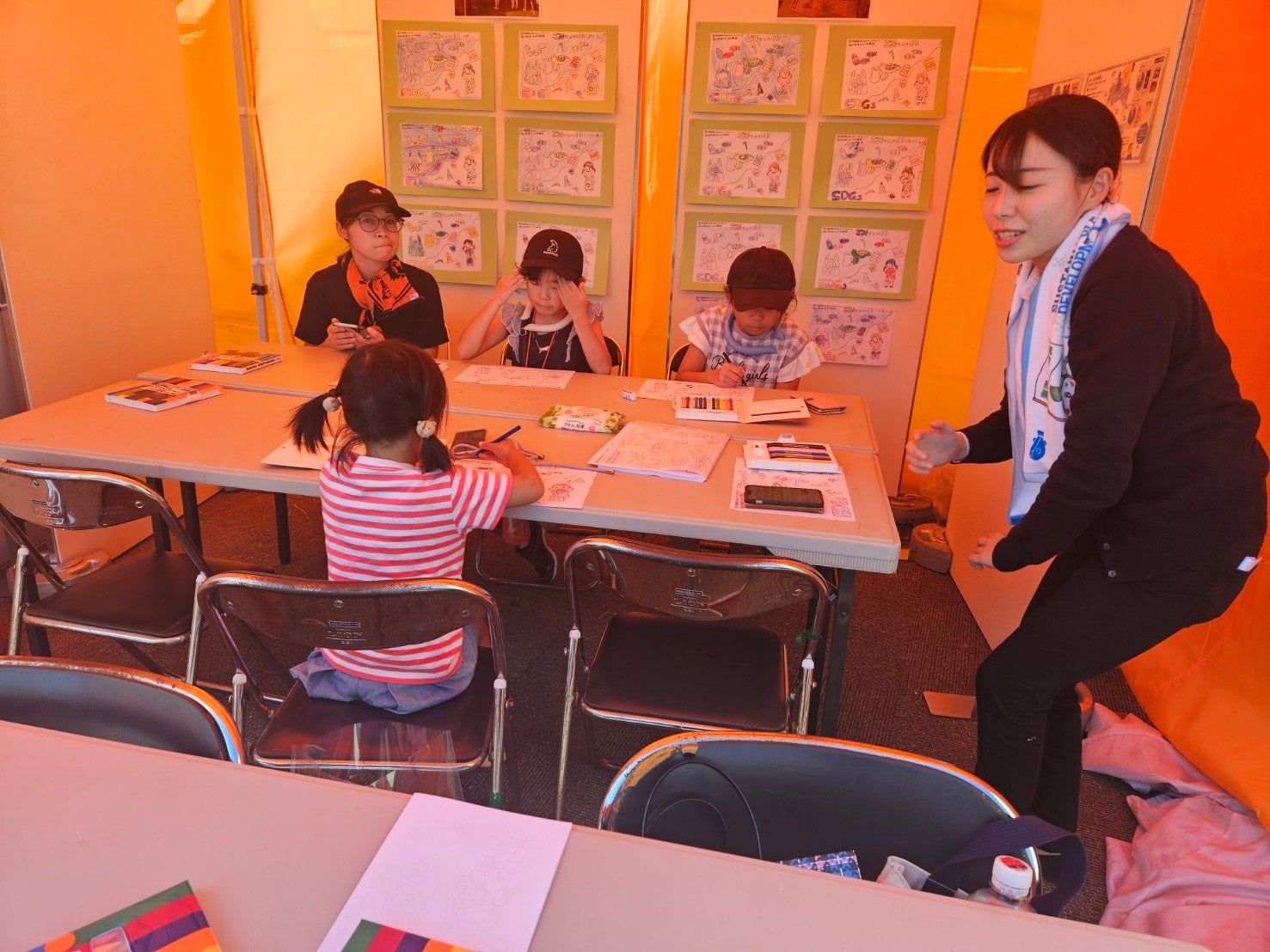 各サポーターズが、これまでの活動を紹介するパネルや動画などをブース展示するとともに、ペットボトルキャップをおもちゃのこまなどにアップサイクルする体験コーナーや海洋ごみ問題を考える塗り絵コーナーなどを開設しました。