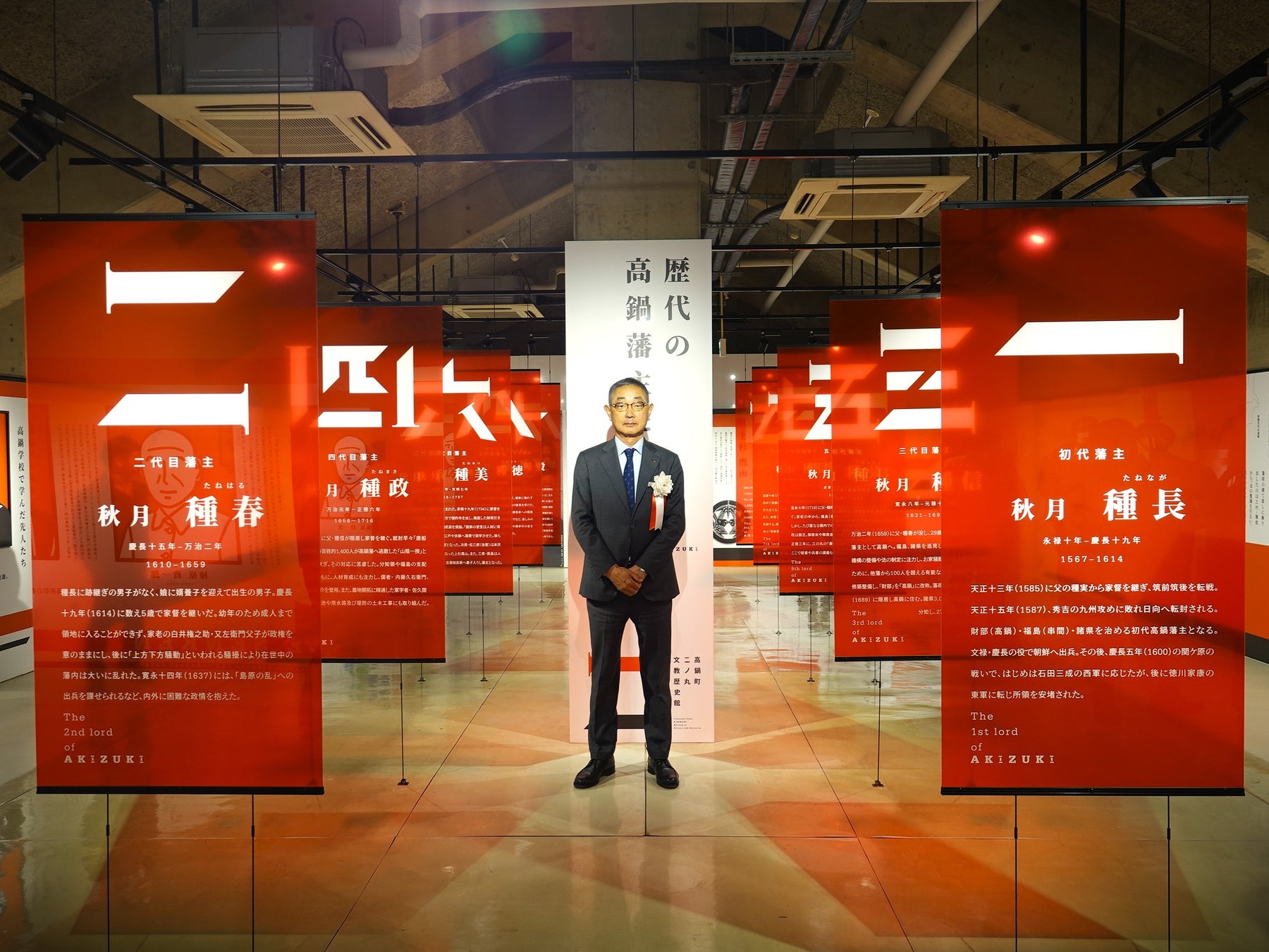 内覧会前の黒木敏之高鍋町長のご挨拶では、「『歴史と文教の城下町』として資料館は、人を惹きつける場所にしないといけないと考えた。そこで、クリエイティブディレクターとして梶友宏氏を召喚し、郷土史に詳しい石川正樹氏や清水正恵氏の協力も得て、大胆な発想で、大胆な絵巻物の世界をつくることができた。『二ノ丸』に人がもっと集まり、高鍋の物語を伝える場所にしたい。高鍋の未来をここから語りたい」と熱い想いをお話しされていました。