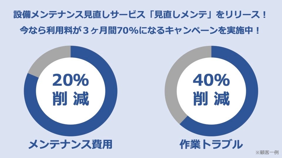 プレスリリースをご覧いただいた方限定で、「見直しメンテ」を3ヶ月間キャンペーン価格でご提供致します。