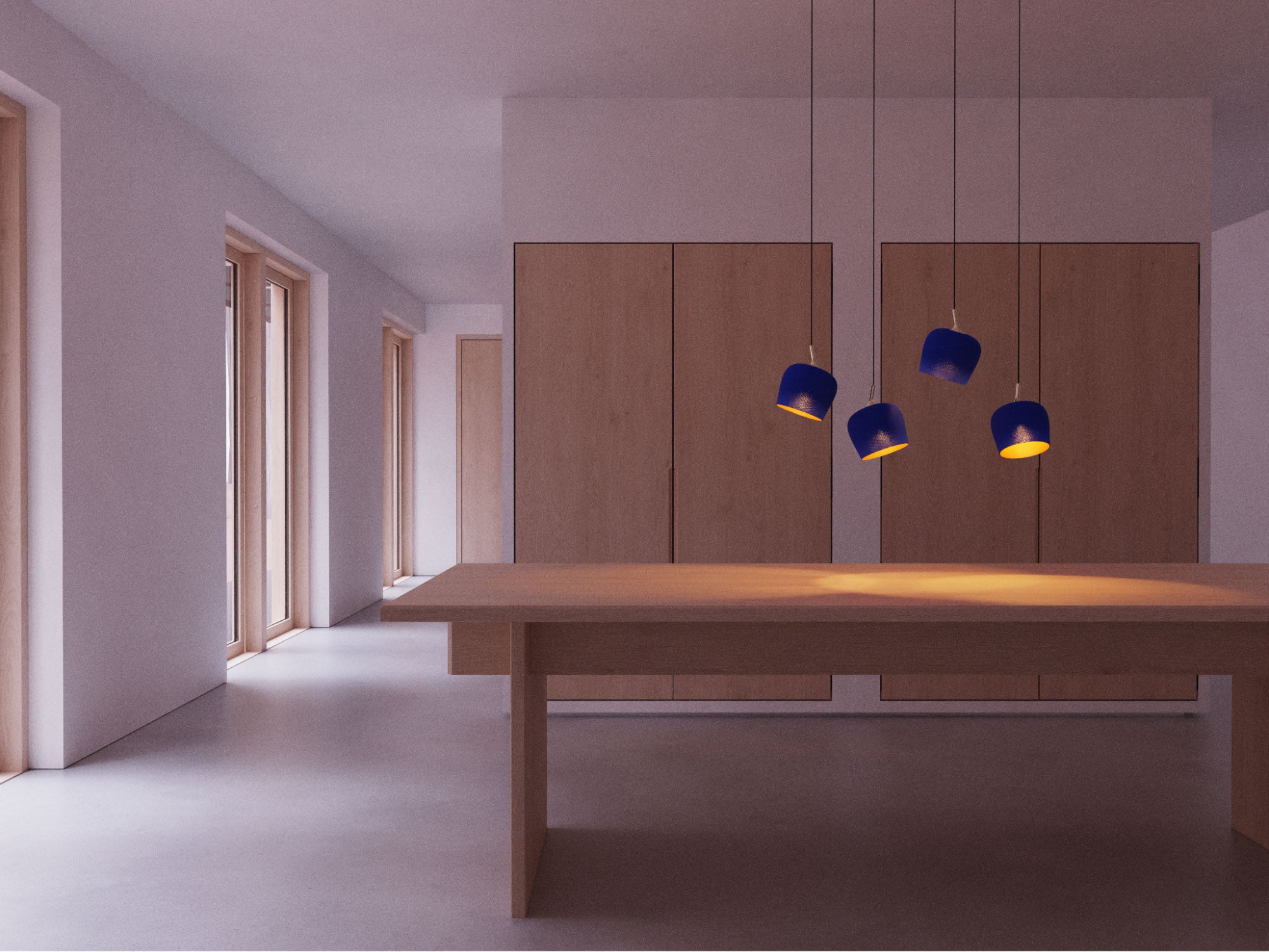 再利用可能な銅を含む樹脂を用いて3Dプリントされたシェードに、独自に生み出した着色法で酸化膜を形成し、あたかも長年受け継がれた金属染色技術のような発色を再現しています。
