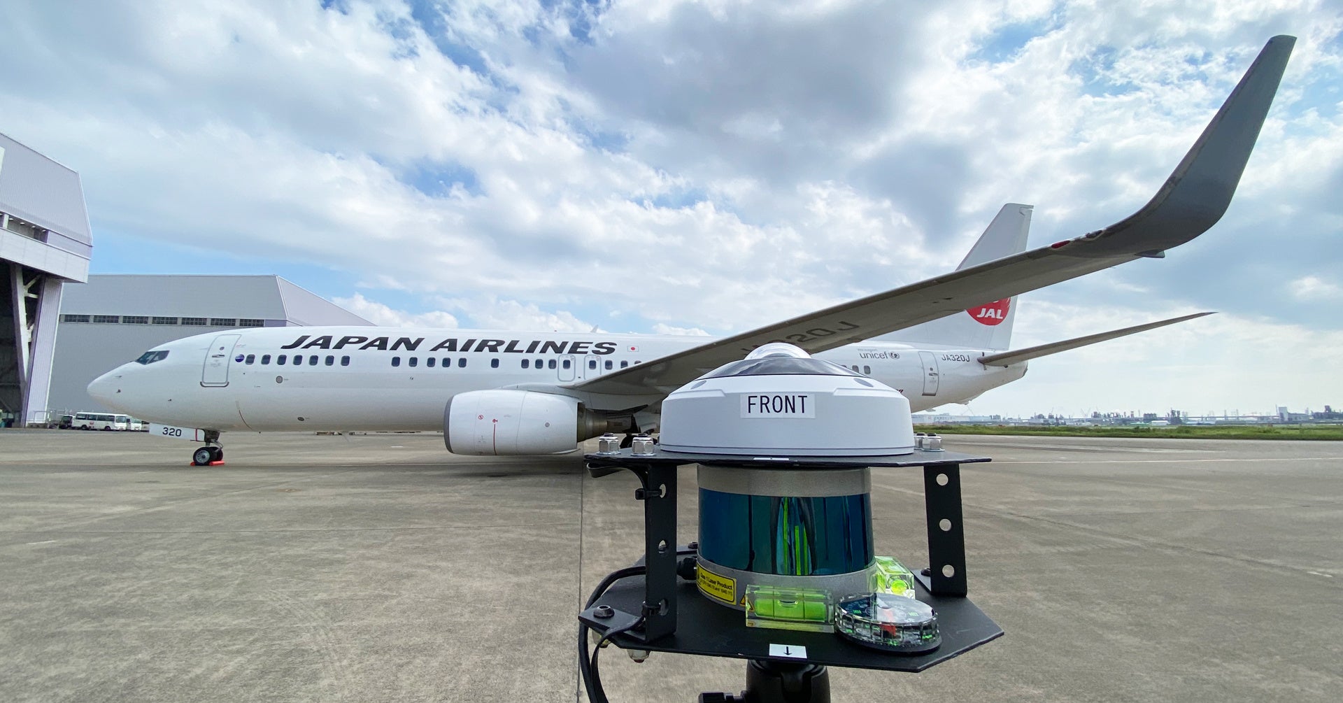 空港内の地上走行中の航空機を対象として、LiDAR※1と360°光学カメラを組み合わせてデータを取得し、クラウド上で稼働中の学習済みAIモデルを使って航空機を検出、対象までの距離・角度を正確に算出する。結果はリアルタイムで実施者のスマートフォンの画面に表示される。航空機は認識率 96.7% で認識され、100m以内の航空機において算出された距離と実測値との誤差の平均は15%であった。これは100mの距離を85mから115mまでの値で測定したことを意味する。