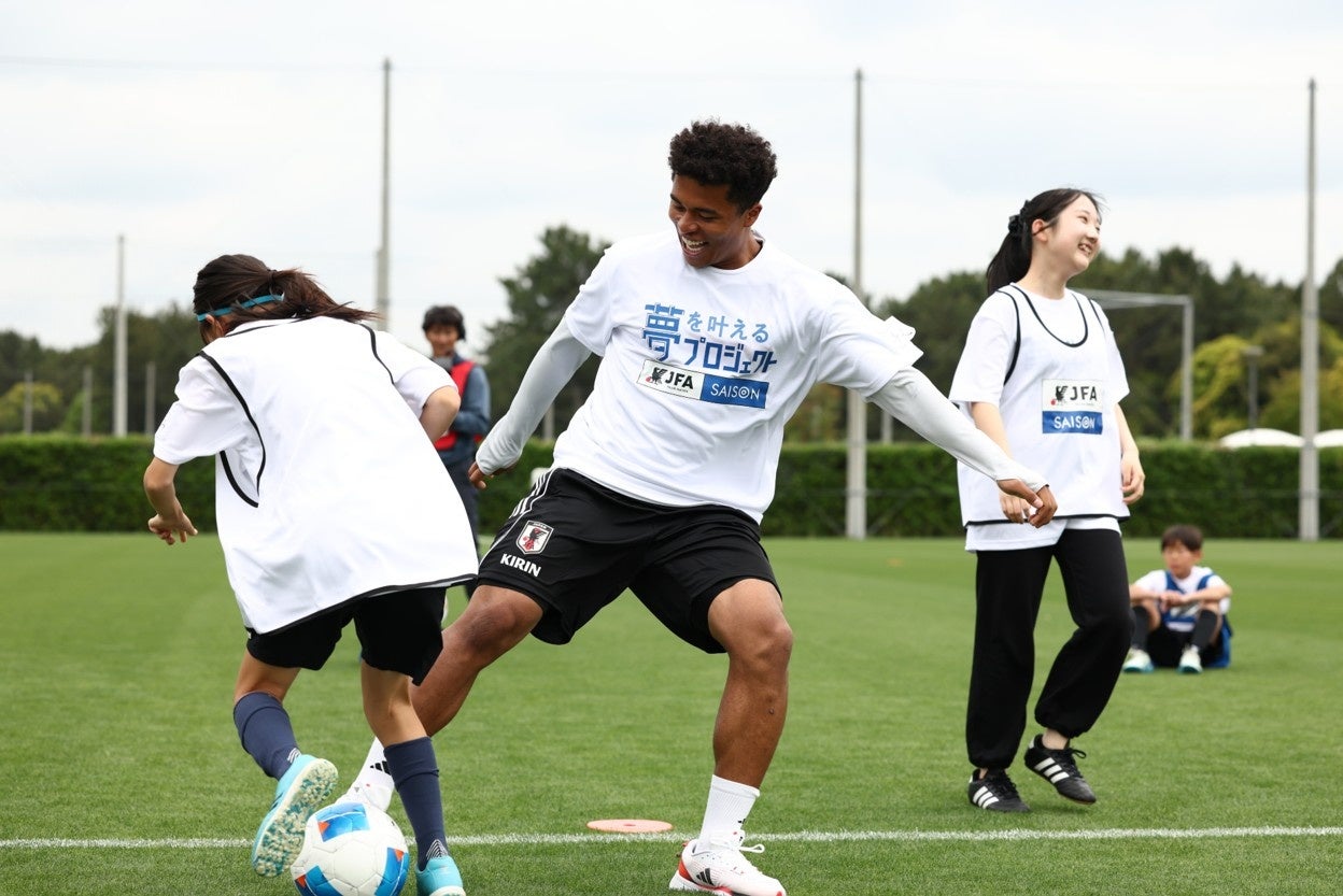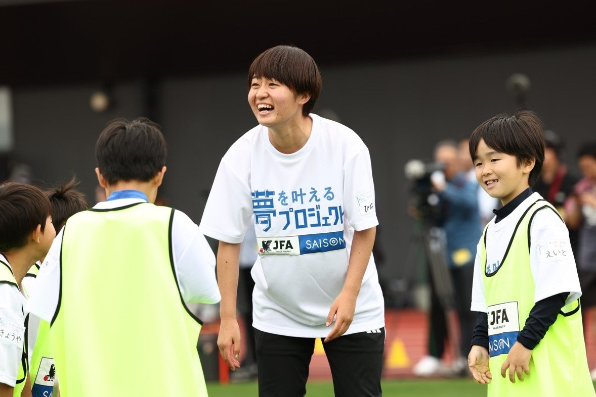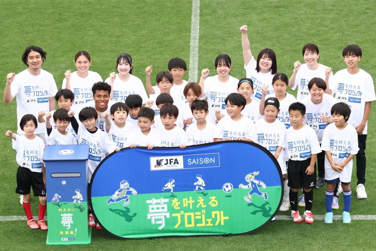 株式会社クレディセゾン(本社:東京都豊島区、代表取締役(兼)社長執行役員 COO:水野 克己)と、公益財団法人日本サッカー協会(会長:宮本恒靖、以下JFA)は共同で、 5月24日(土)に、サッカーを通じてファンの“夢”を応援する取り組みとして、「夢を叶えるプロジェクト」第一弾となる参加型イベントを高円宮記念JFA夢フィールドにて開催しました。本プロジェクトは、全国のファンから寄せられた「サッカーにまつわる夢」を実際にカタチにしていく、“価値共創プロジェクト”です。今回は、全国から約900件の夢が寄せられました。イベント当日はSAMURAI BLUE・なでしこジャパンの代表選手が参加し、同様の夢を挙げた方の中から選ばれた参加者28名に向けて、直接指導やトークセッションを実施いたしました。