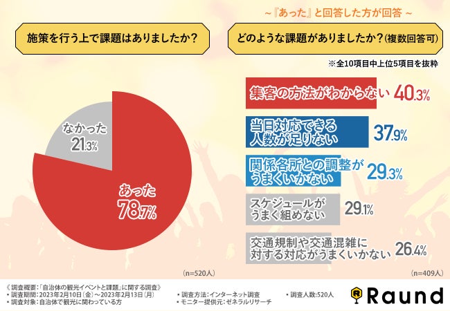 - 【課題ありと答えた関係者が7割以上】自治体の観光イベントにおける課題