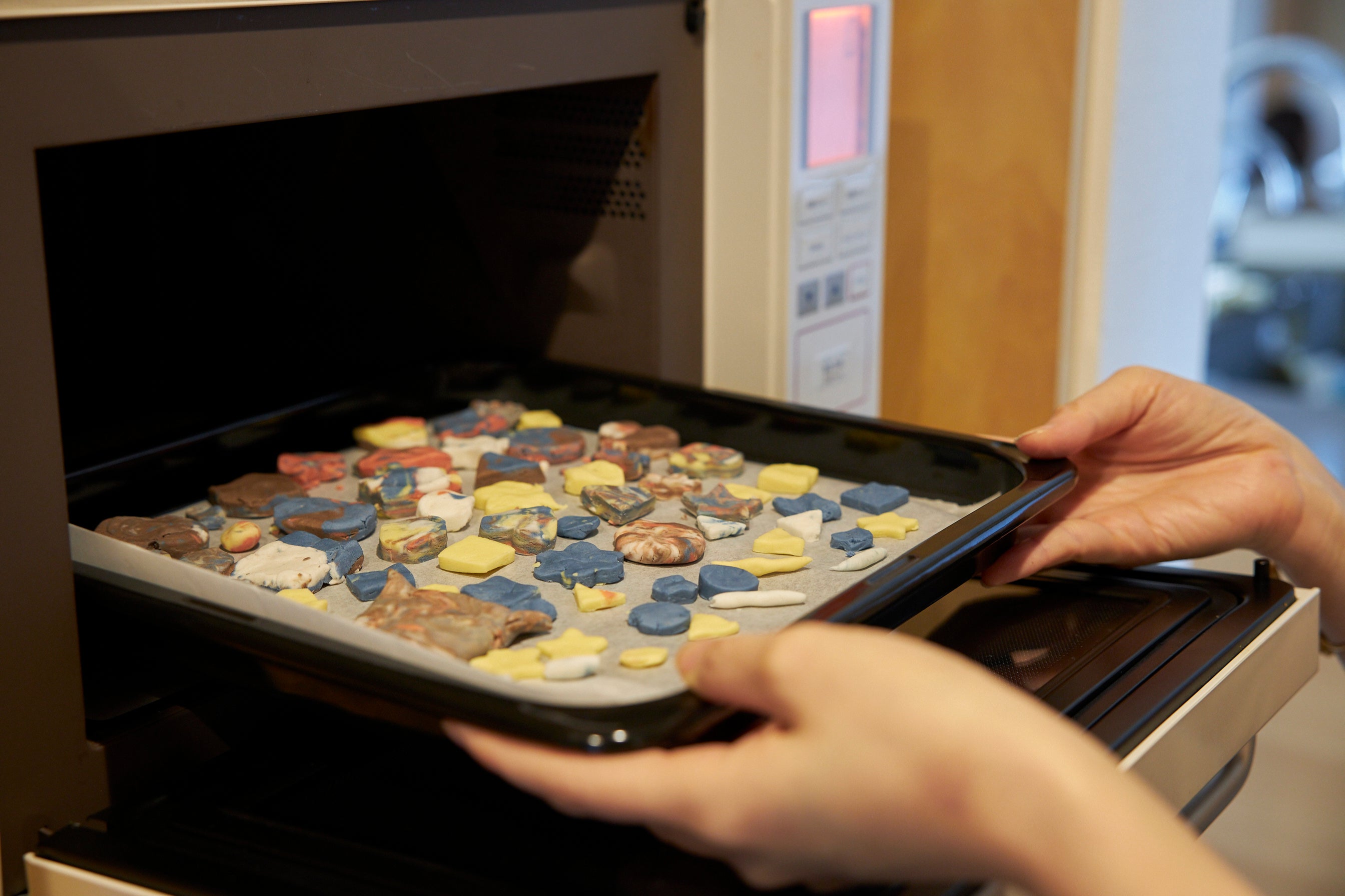 コロリドーは、子供から大人まで幅広い年齢層に向けた革新的な製品で、クッキー作りを手軽に楽しい体験に変えることができます。従来のクッキー作りとは異なり、常温の生地の状態なので、解凍や計量の準備が不要。好きなカタチを作ってオーブンで10分焼くだけで、オリジナルクッキーが完成します。アレルギー指定材料28品目不使用、カラフルな色は全て天然素材と、「誰もが安心して楽しめる体験」を提供しております。(国際特許出願)