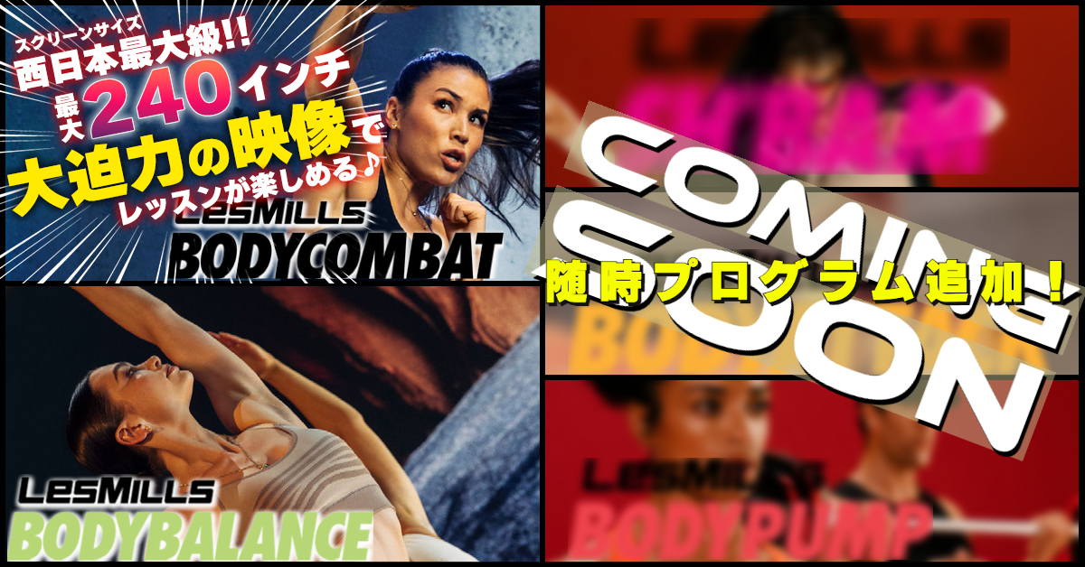 世界70カ国以上で展開される人気バーチャルスタジオ【レズミルズ】をスクリーンサイズ西日本最大級ど迫力映像で多彩なレッスンが楽しめます!