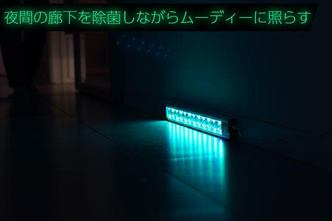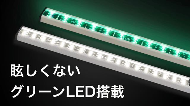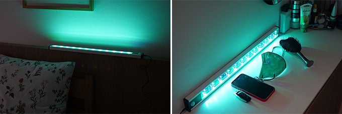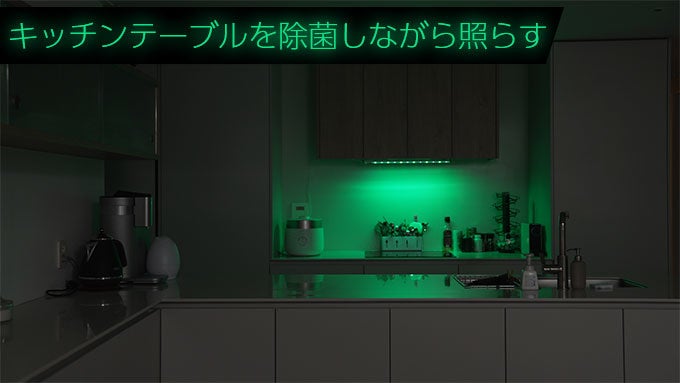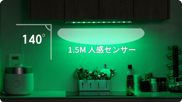 - 緑色LEDの光は、ムーディーなルームライトにも。人感センサー搭載で近づくと白色灯に早変わり