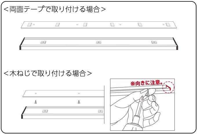 - 取付用のシリコン製両面テープ4個・木ねじ