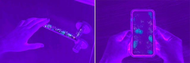 LEDライトを照らしておくだけで、照射した物の除菌ができます。