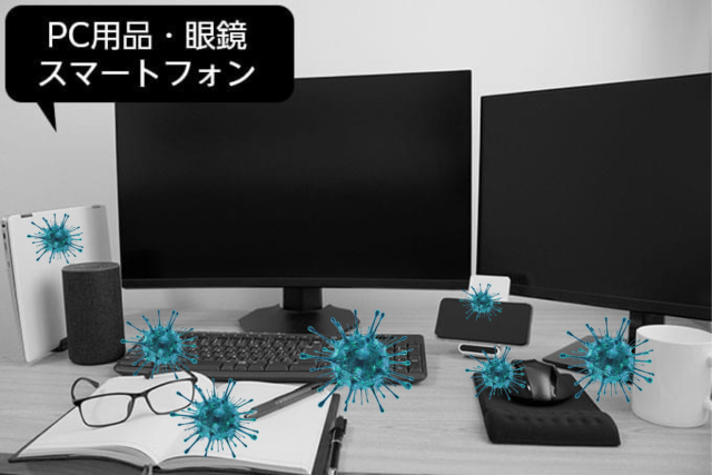 家の中には、あちこち菌が繁殖しています。スマホ、ドアノブ、台所のまな板、玄関の傘や靴、キーボードやお子様のおもちゃ。