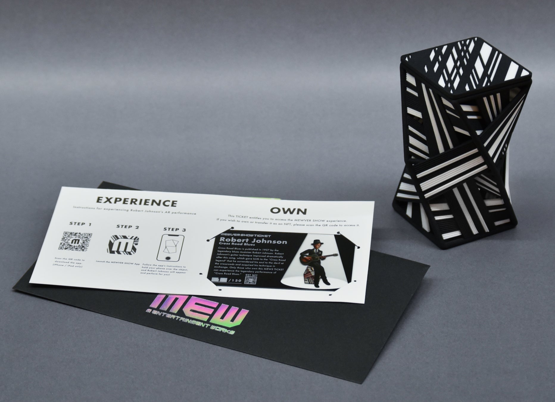GRAMMY Gift Lounge来場者のもとには、「MEWVER SHOW TICKET」と、バーコードのようなデザインが特徴的なミニチュアの椅子がギフトとして贈られました。この「MEWVER SHOW TICKET」は、「MEWVER AR LIVE」のショーの体験にいつでもアクセスすることができる権利。