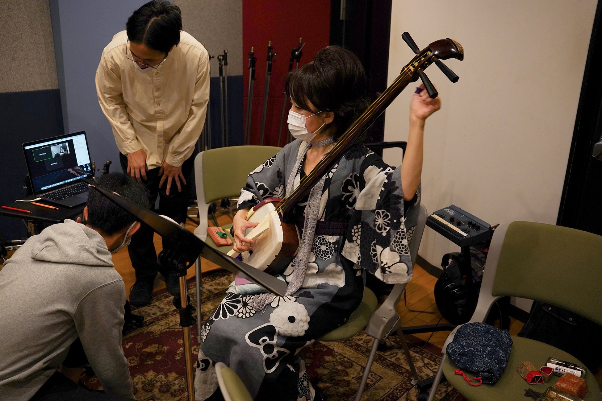 石田は総合アレンジャーとして加わり、3人のスケッチを基に伝統音楽のアレンジ、採譜、邦楽器演奏者のマネジメント、レコーディングなどを務めました。