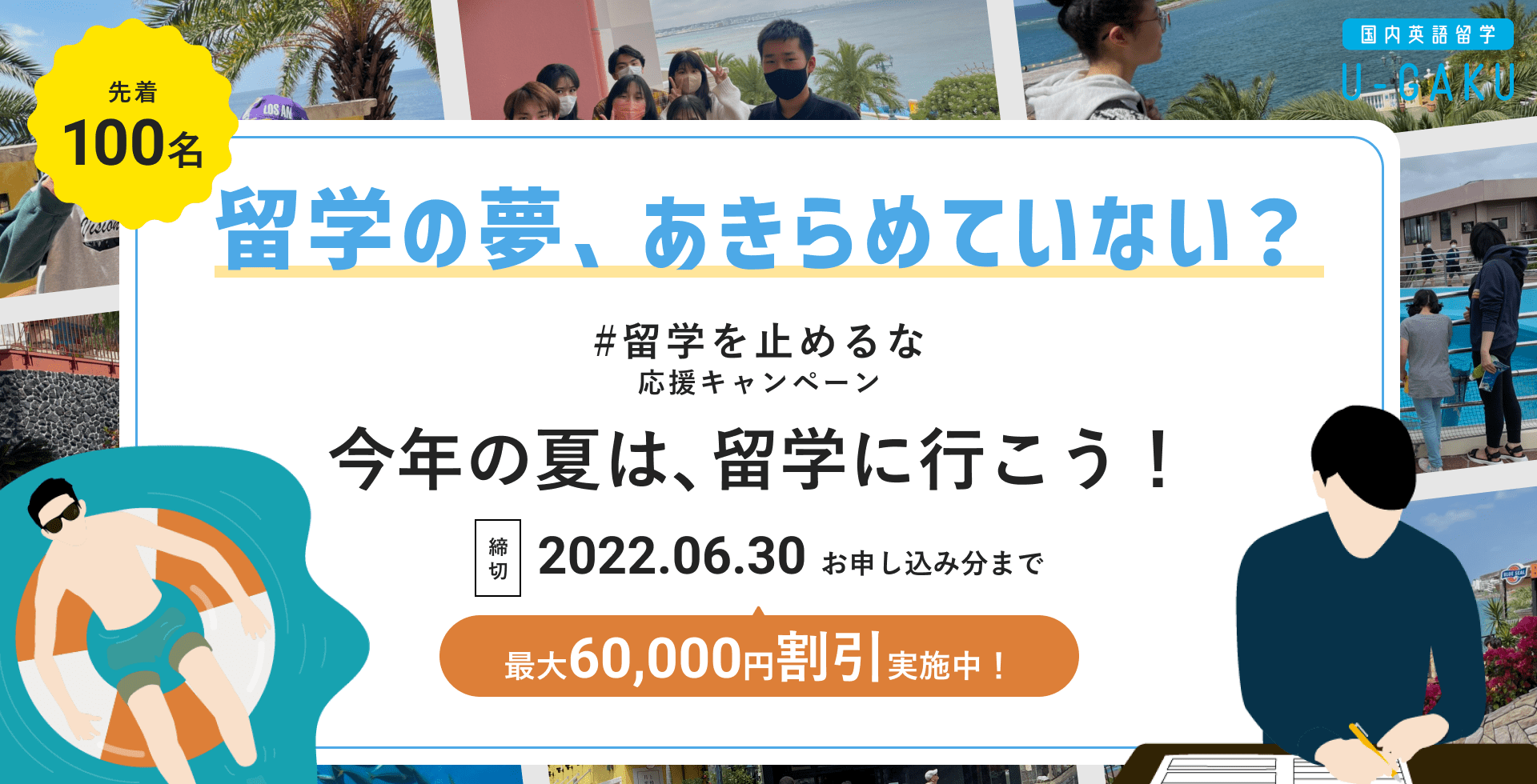 【今年の夏は、留学へ!】国内英語留学U-GAKU、#留学を止めるな応援キャンペーンを開催。コロナ禍により海外留学の機会を失った学生へ向け、参加費最大¥60,000割引を実施。