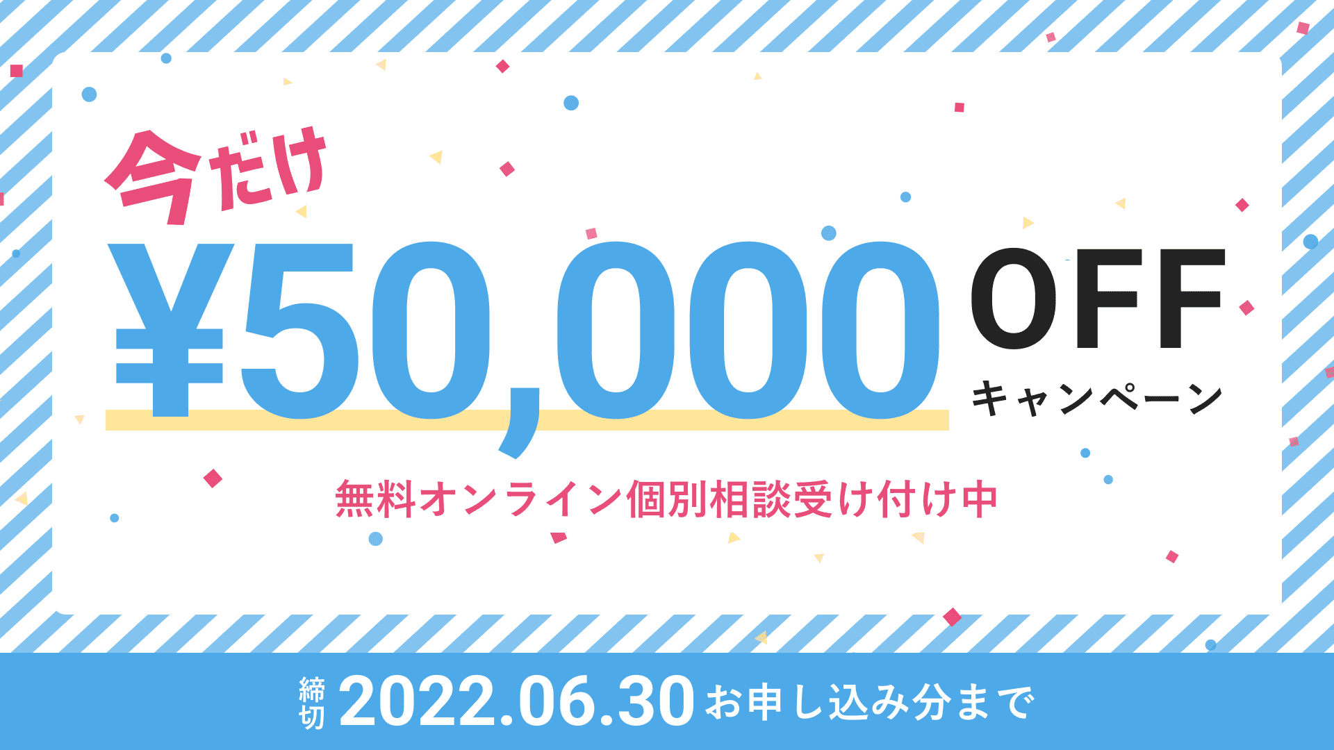 無料オンライン個別相談お申し込みで参加費から¥50,000 OFF