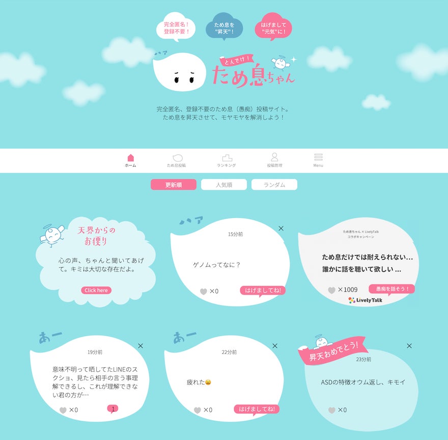 完全匿名のため息投稿サイト『とんでけ!ため息ちゃん』