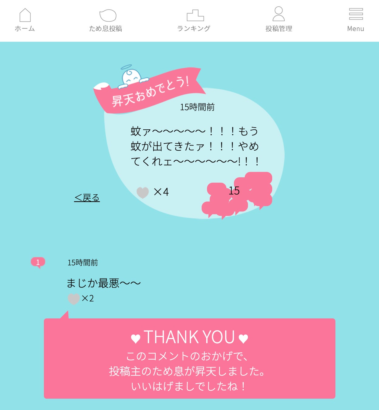 『とんでけ!ため息ちゃん』励ましコメントによる「ため息」昇天イメージ