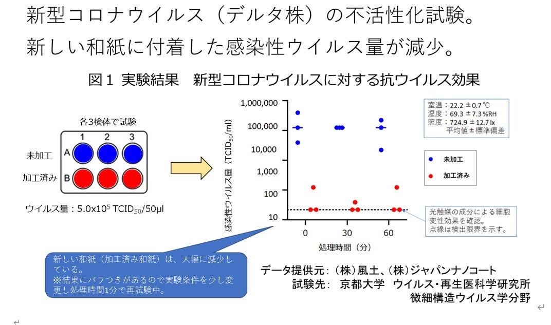 新型コロナウイルスのデルタ株不活性効果を京都大学ウイルス・再生医科学研究所(微細構造ウイルス学分野)にて実証。㈱ジャパンナノコートが開発した可視光熱触媒コート剤