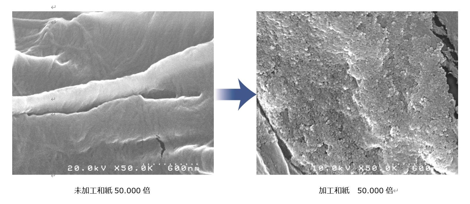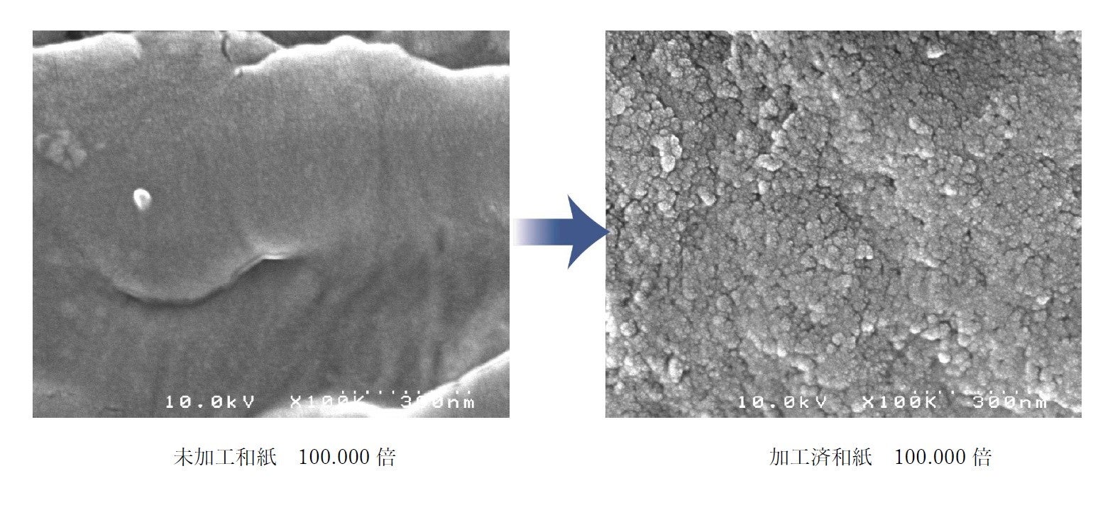 現在の製品化の取り組みとしては、日本の伝統工芸で作られる和紙を絶やさず、むしろ発展させて後世に残す手助けをしたいと思い、株式会社風土と共同で本コート剤を和紙に加工し、抗ウイルス、除菌、抗菌、消臭などの効果を機能として付与させた和紙を開発しました。