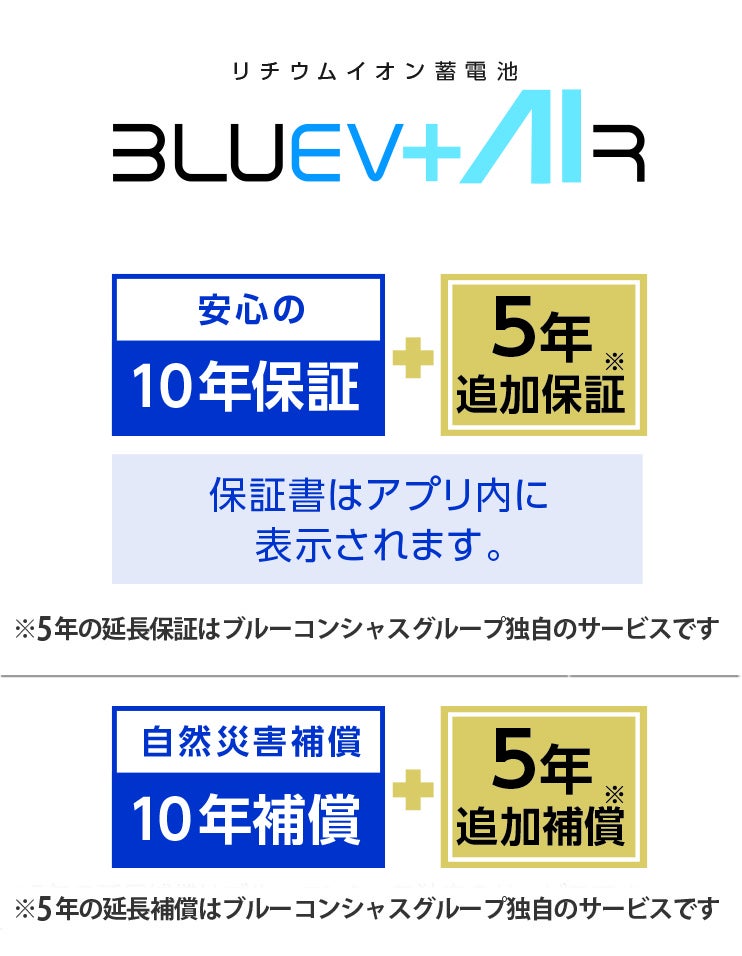 〇メーカー保証(10年間)に加えて、ブルーコンシャスグループ独自の5年延長保証が