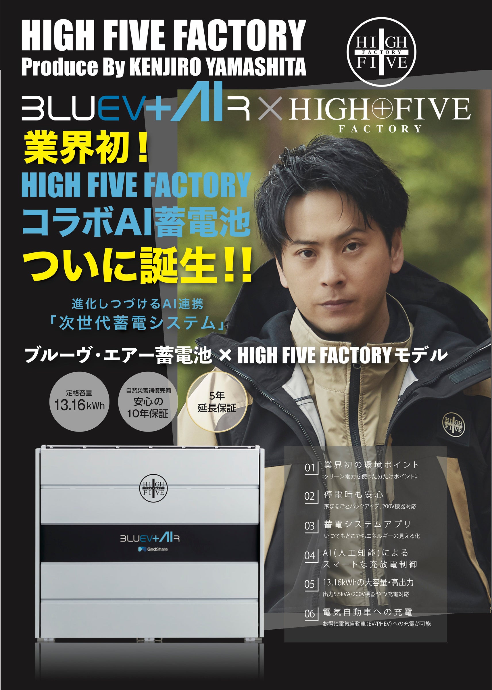 「HIGH FIVE FACTORY」とのコラボAI蓄電システム 「BLUEV Air(ブルーヴエアー)」販売開始
