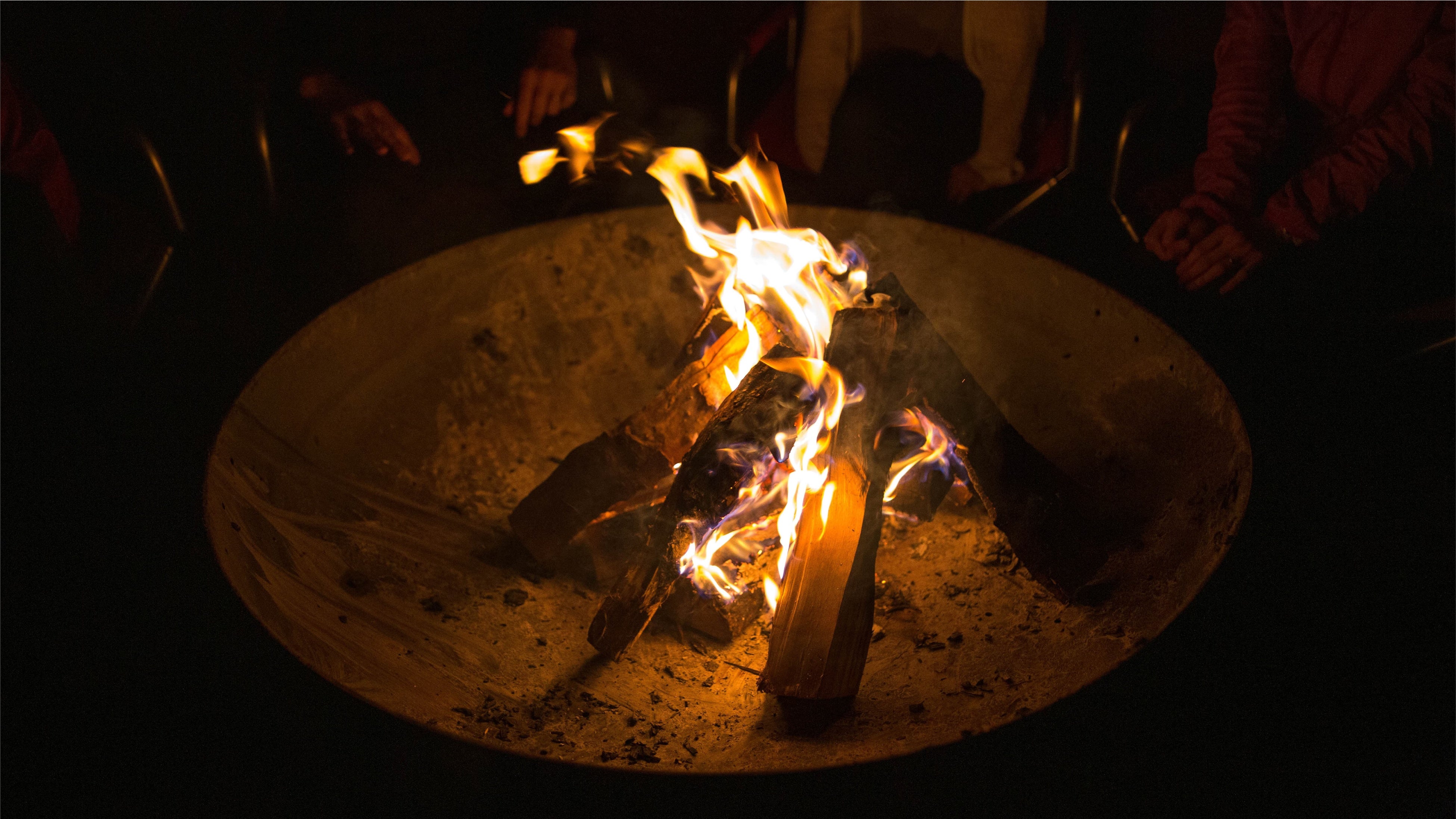 宿泊棟にある直径1mのファイヤーピットを囲みながら、幻想的な焚き火のゆらめきを前に仲間と眠くなるまで語りあえます。