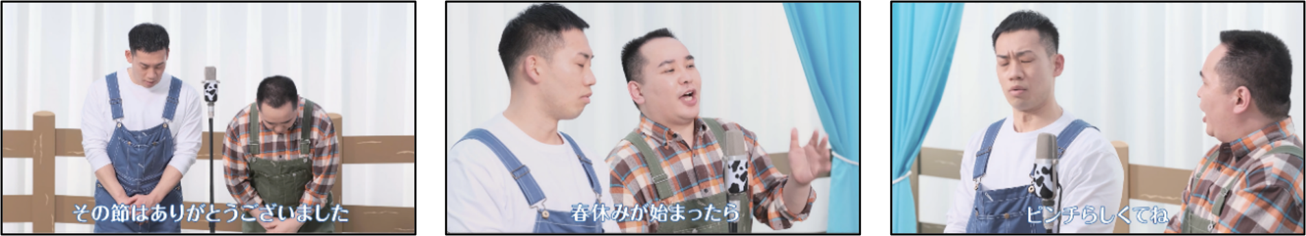 年末年始に続き牛乳の消費が減少する春休み期間に牛乳を積極的に飲んでいただくため、「豚汁や鯖の味噌煮に入れてもコクが出て美味しい」など、牛乳の活用法を漫才で紹介