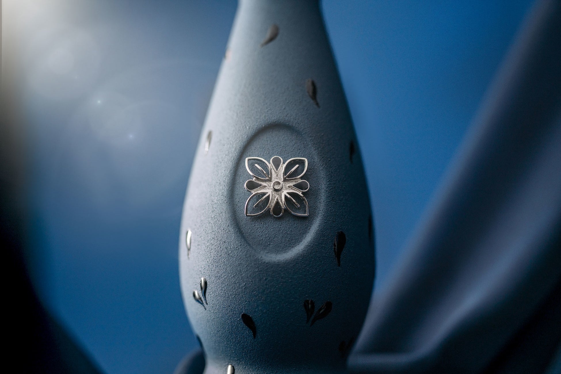 25周年アニバーサリーボトルは、ブランドアイコンであるクラセアスール・テキーラ・レポサドに敬意を表してデザインされ、ブランドの象徴的なカラーである華麗なコバルトブルーをボトル全体に纏っています。また、ボトル全体にはたんぽぽの綿毛からインスピレーションを得たフェザーペイントが描かれており、ブランドの世界への広がりを表現しています。これらペイントのうち25か所はプラチナで塗装されており、ブランドの25年の歴史への想いが込められています。