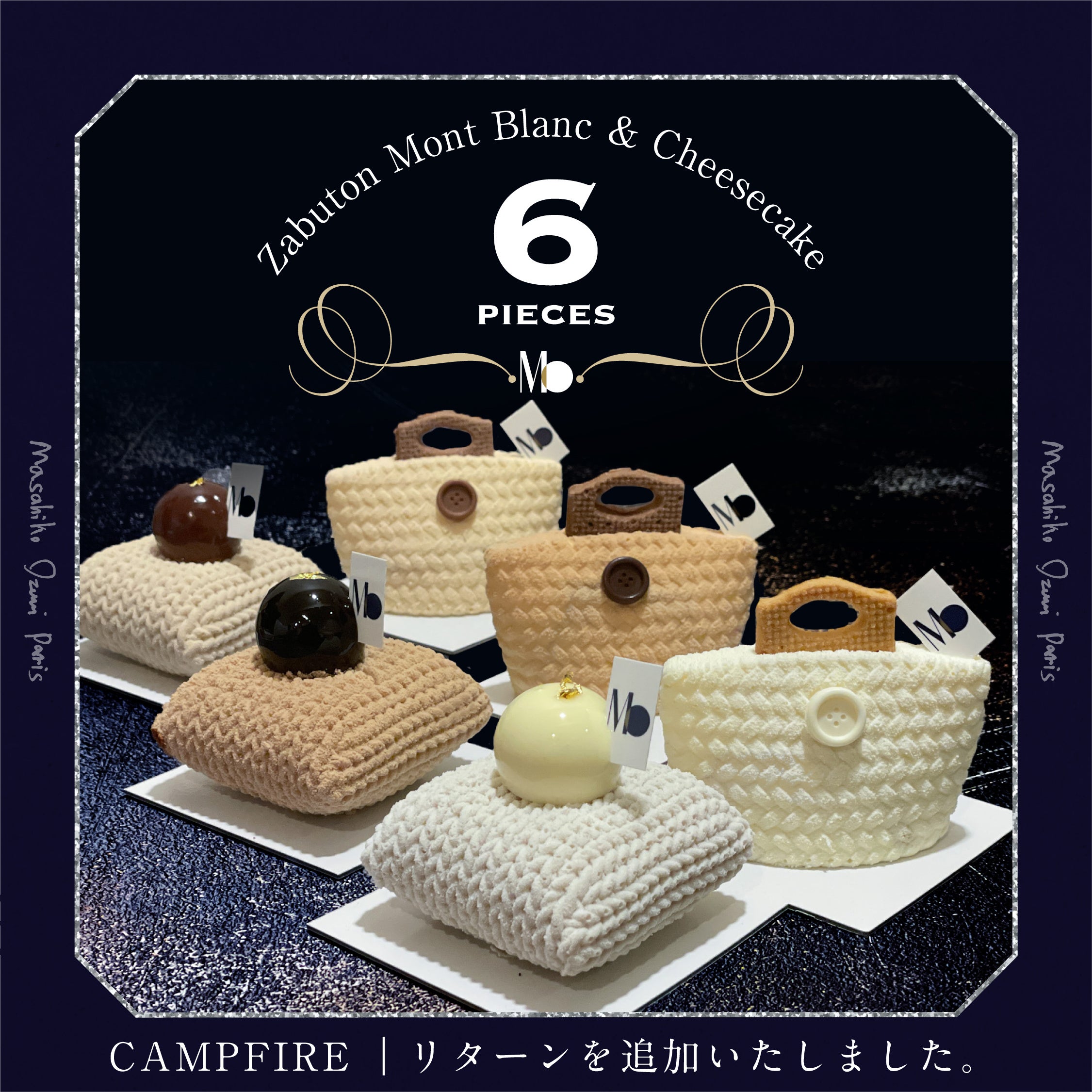 即売り切れのモンブラン3種・チーズケーキ3種をキャンプファイヤー限定として1月31日まで追加リターンとして設置します。