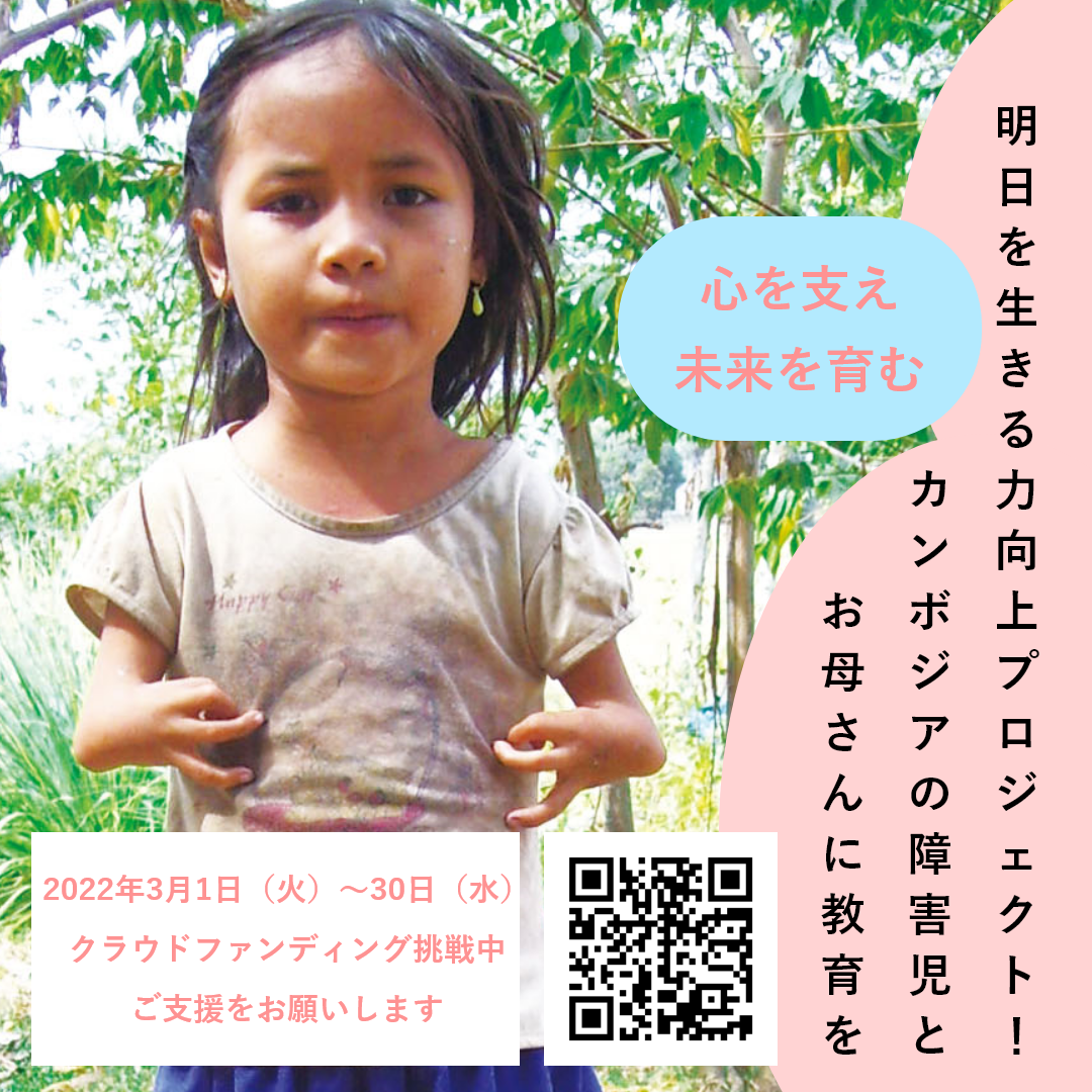 「明日を生きる力向上プロジェクト!カンボジア障害児とお母さんに教育を」2020年3月1日~30日クラウドファンディングを実施します