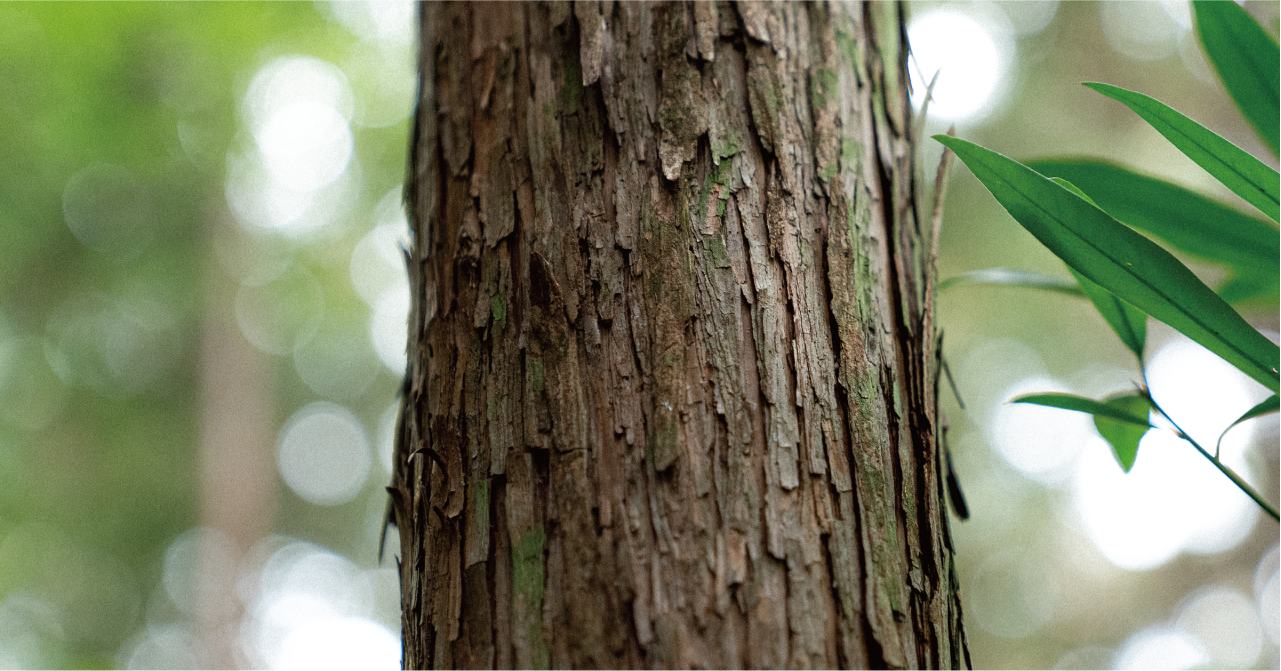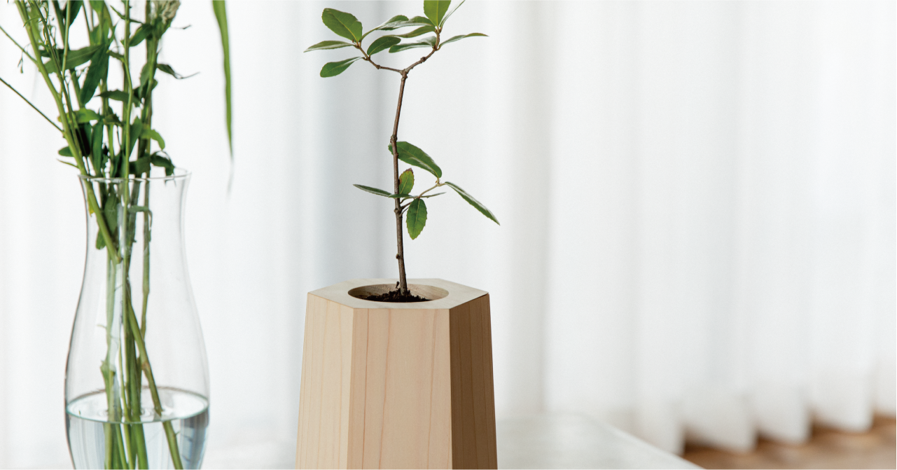 温かみのある色味と甘い香りを放ちます。約30年後に大きく育ち、流通していく未来の苗木の姿を想起させます。