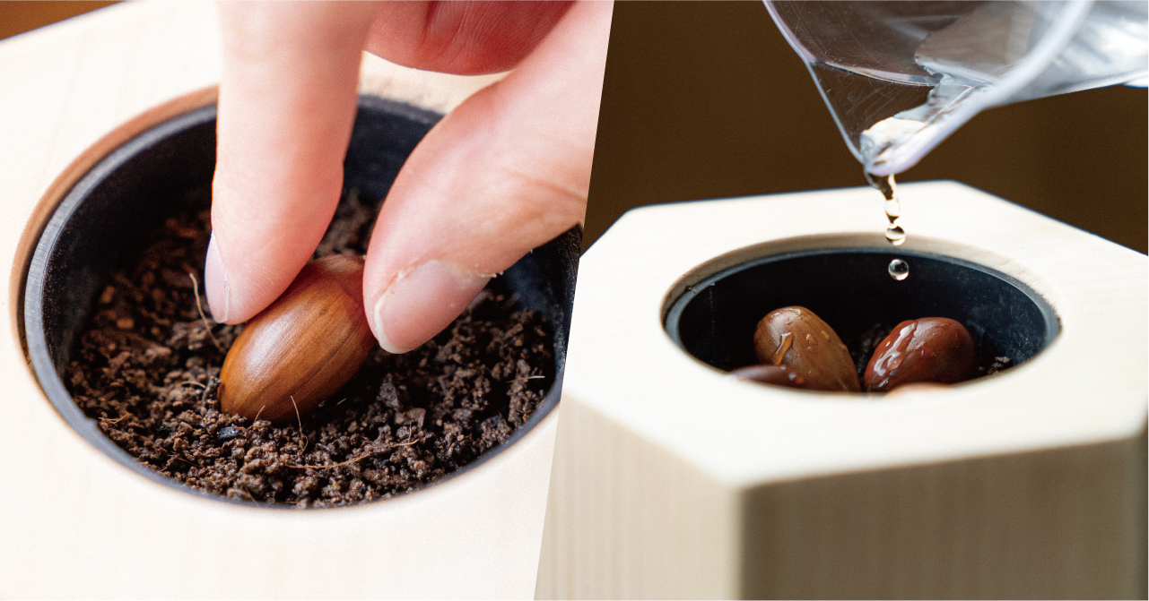 MODRINAEはどんぐりの発芽から始まります。芽生えの瞬間に立ち会うことで愛着もひとしお。