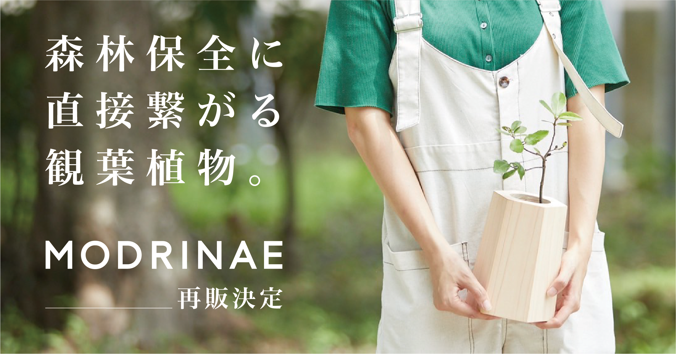 森林保全に直接貢献できる観葉植物『MODRINAE-戻り苗-』。昨年度に続き、販売が決定。どんぐりから植林の苗木を育てるプロダクト。