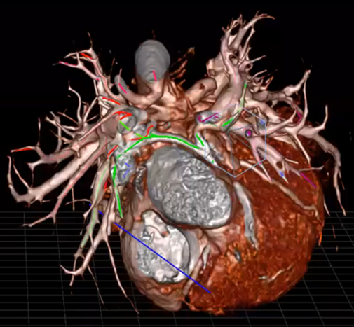 上尾中央総合病院 心臓血管センター センター長 手取屋岳夫医師は、 「三次元情報としての 2D-3D 画像は、細部に“作り込み”が施されているので三次元空間での観察とは似て非なる物です。True3Dを用いると、生理的条件下での解剖学的所見を従来にはない三次元空間で観察することができ、特に拍動に同期してダイナミックに機能する心臓大血管領域の手術やインターベンションでは、病態把握が容易になります。ベテラン外科医の経験値に匹敵する解剖学的解釈が、若手を含めてスタッフの間で情報共有可能となり、臨床教育に期待できます。また、TAVI から始まったstructural heart分野には、左心耳閉鎖や僧帽弁領域への心内デバイスが導入されています。大動脈領域にも複雑病変に対する血管内デバイスが開発されています。これらを正確に且つ高い再現性で運用するために、True3D は重要なモダリティとなると確信しています。」と述べています。