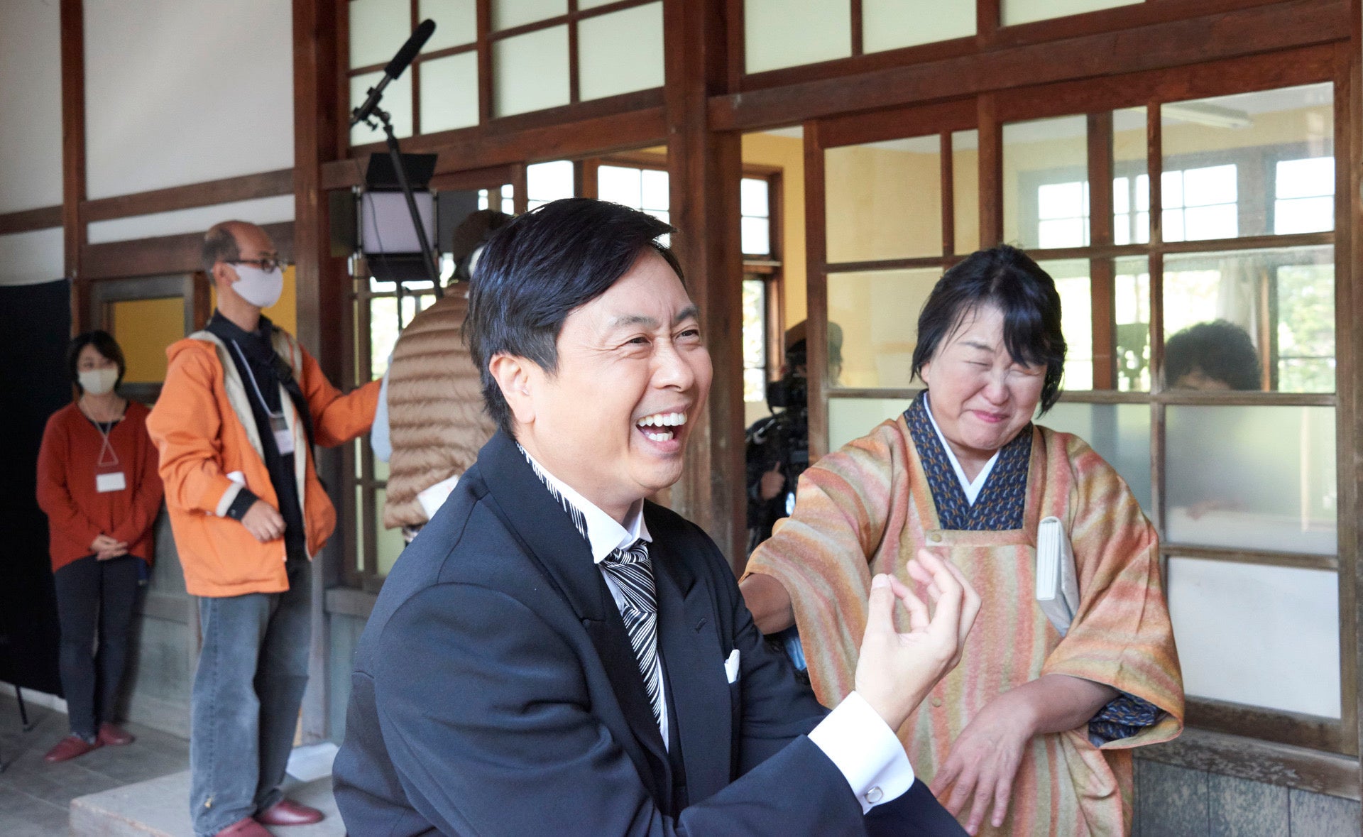 また、全日本聾唖連盟初代連盟長となる藤本敏文先生役は、常から舞台で演じている、NHK手話ニュースキャスターでお馴染みの那須英彰。そして、吉本興業の手話部に所属する次長課長の河本準一がアドリブも手話でツッコミを入れている場面は必見である。