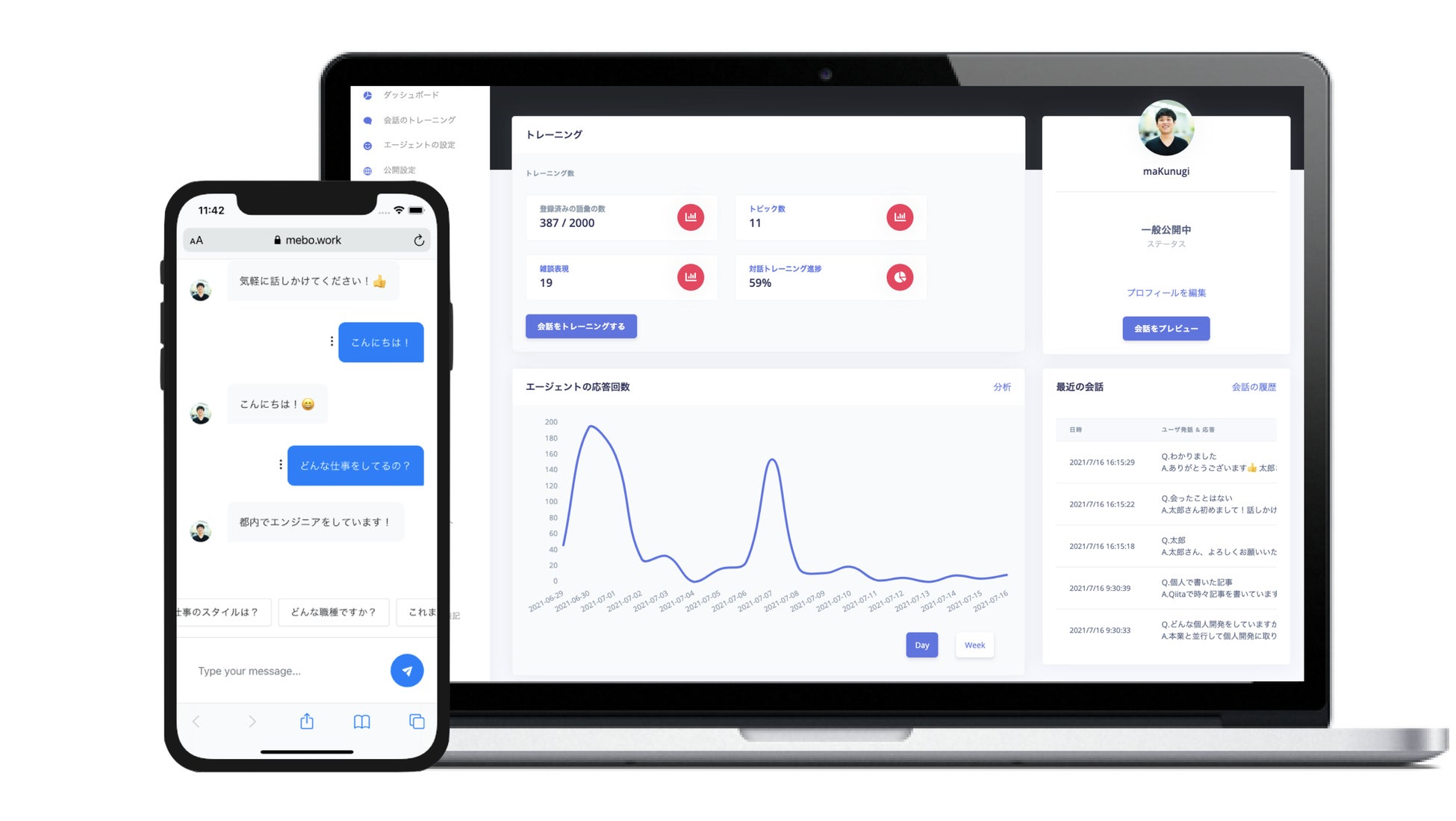 miibo(ミーボ)は、自然言語で会話ができるChatGPT(GPT-4を含む)に対応した高性能な「次世代型」のチャットボット「会話AI」を、誰もが簡単に、プログラミング不要のノーコードで、無料から構築できるプラットフォームです。