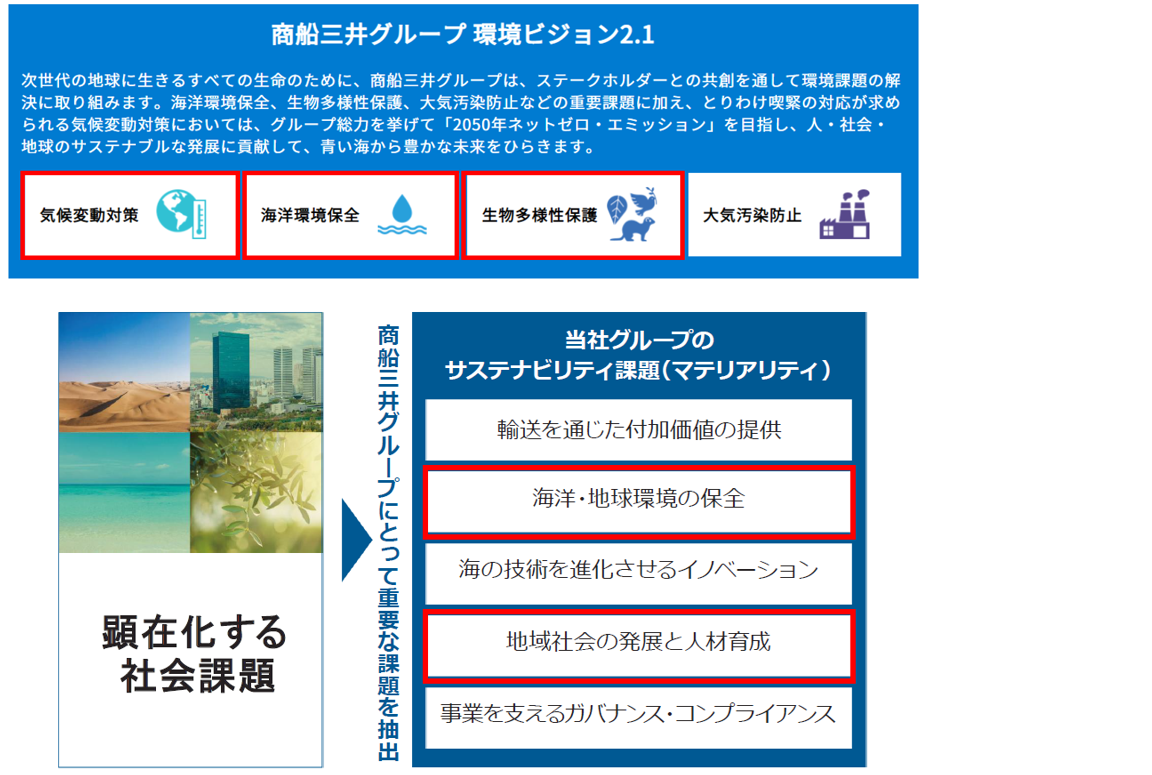 【商船三井グループ 環境ビジョン2.1における主な取り組みとマテリアリティ】