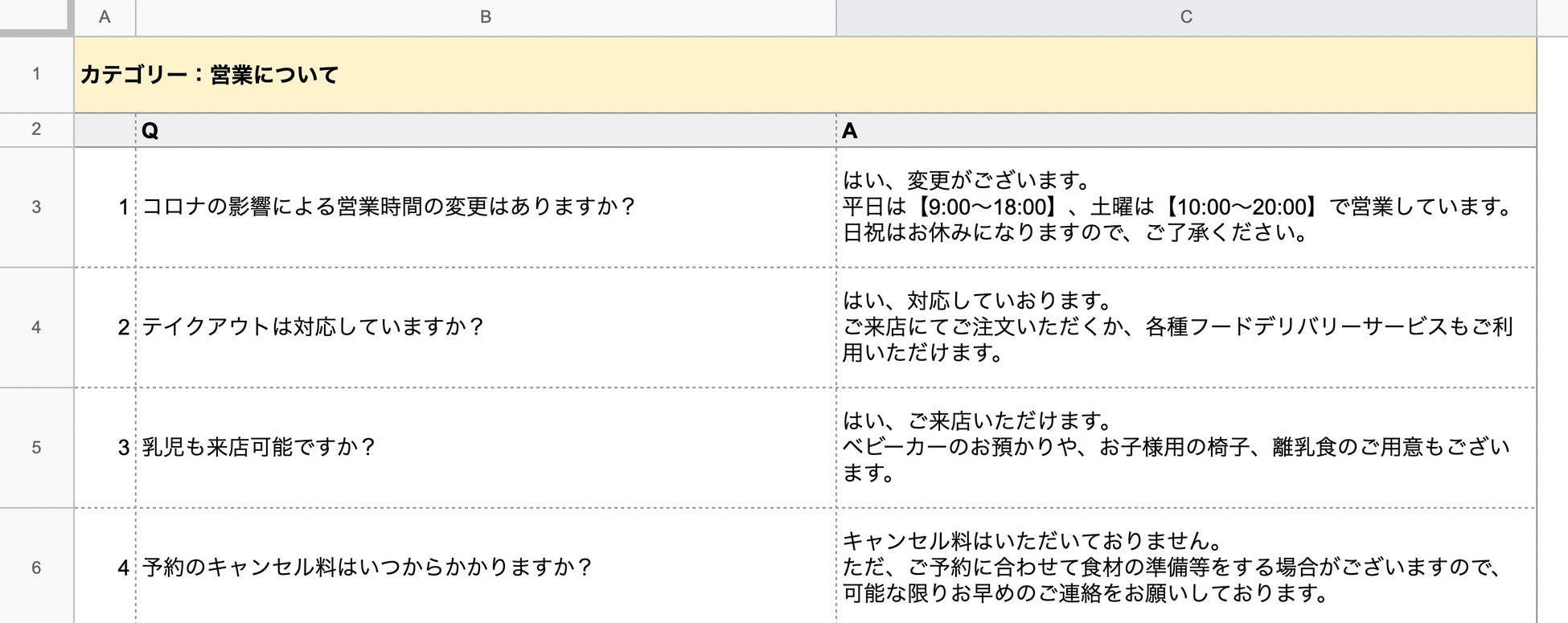 ベータ版では、掲載したいQ&Aを「Googleスプレッドシート」へ入力するだけで気軽にサイトを公開いただける仕様となっています。
