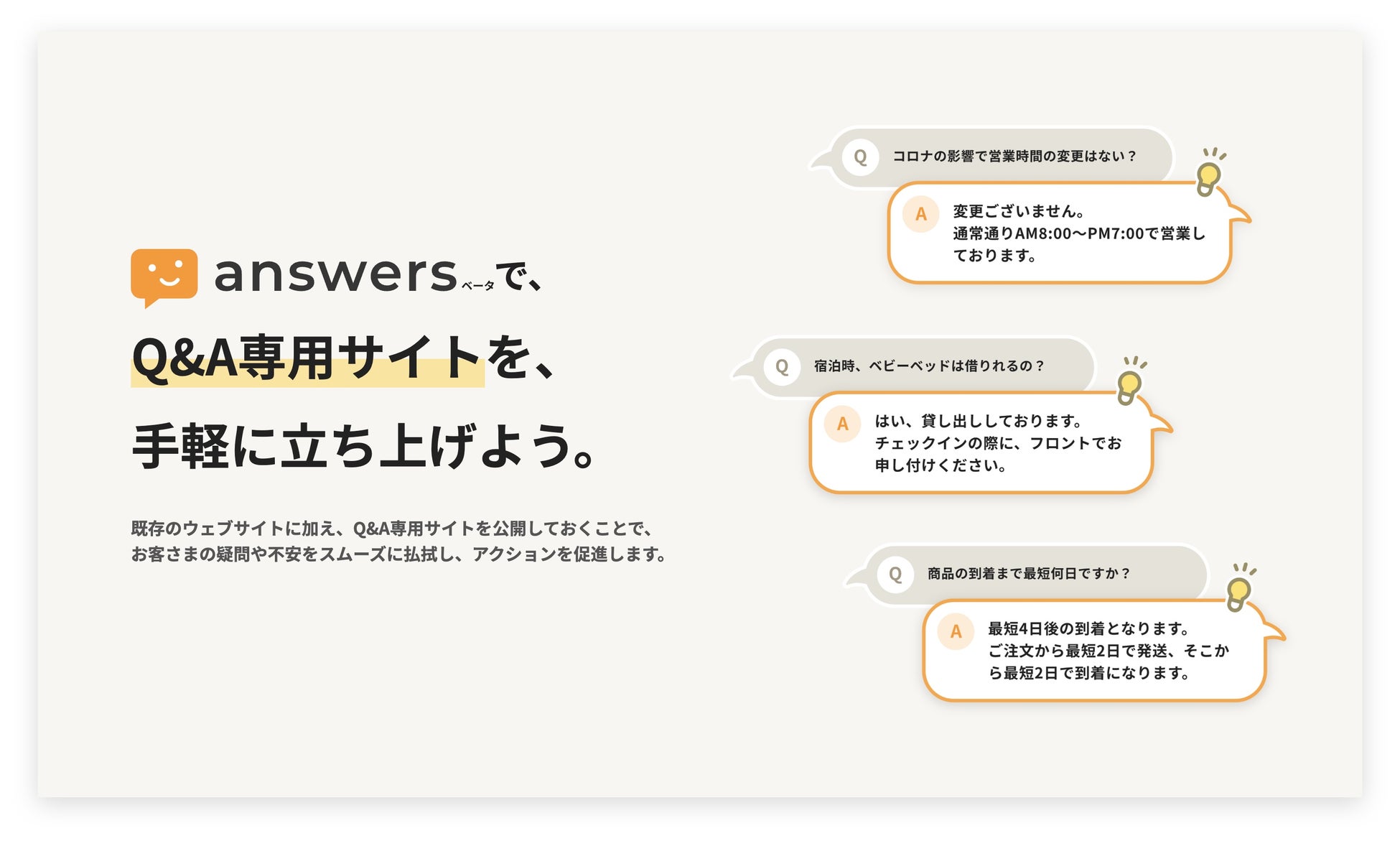 Q&Aサイト作成サービス「answers」ベータ版の提供を開始【特別価格で提供中】